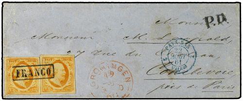 3(2) 1861 GRONINGEN a FRANCIA. 15 cts. amarillo (2).
