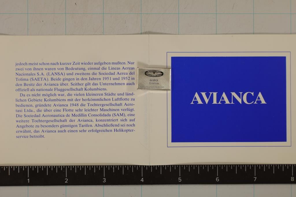 INGOT. AVIANCA COLUMBIA WITH INFO CARD, 1981 FRANKLIN MINT. OFFICIAL EMBLEMS OF THE WORLDS GREATES AIRLINES SET.