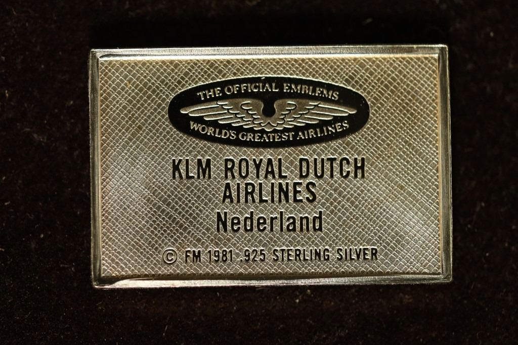 ROYAL DUTCH AIRLINES OF NEDERLAND. PART OF THE OFFICIAL EMBLEMS WORLD'S GREATEST AIRLINES. FRANKLIN MINT 1981 STERLING SIL VER AND COLORIZED ON ONE SIDE