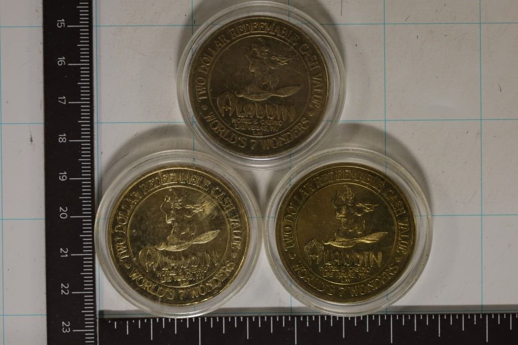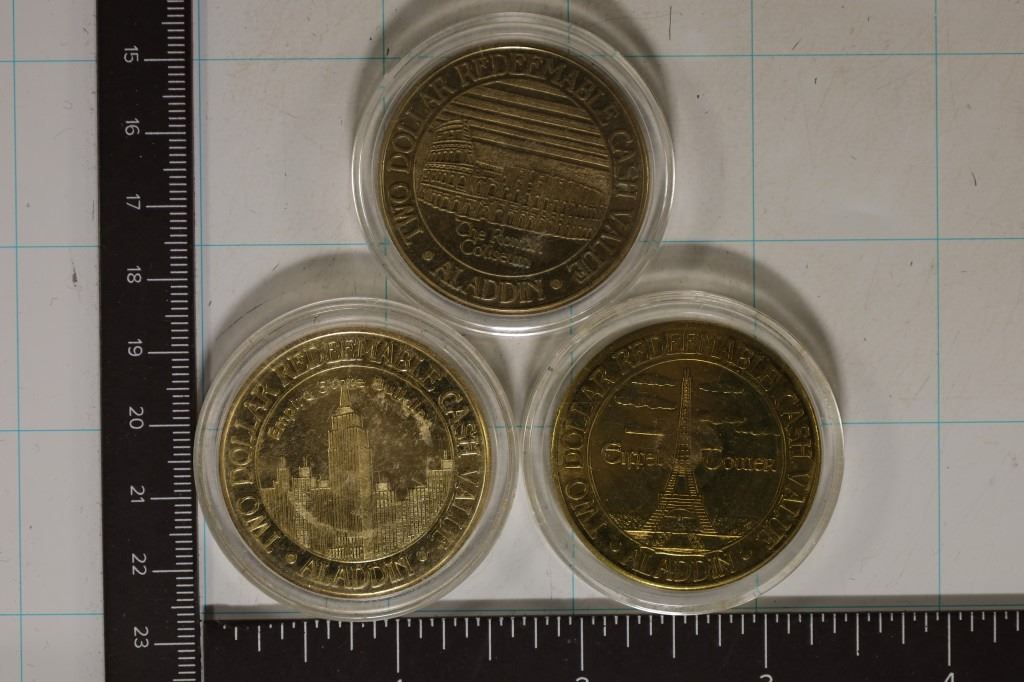 OF WORLD'S 7 WONDERS TOKEN SERIES, THE ROME COLISEUM, EMPIRE STATE BUILDING AND EIFFEL TOWER, ALL IN HARD PLASTIC CAPSULE