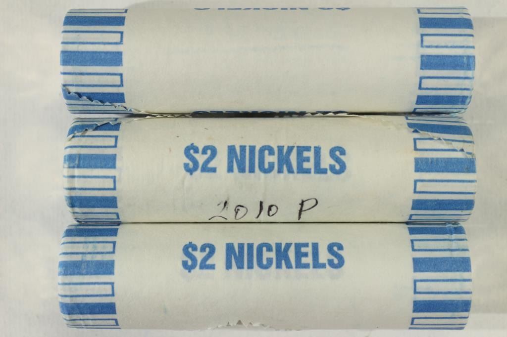 3-$2 ROLLS OF 2010-D JEFFERSON NICKELS BU