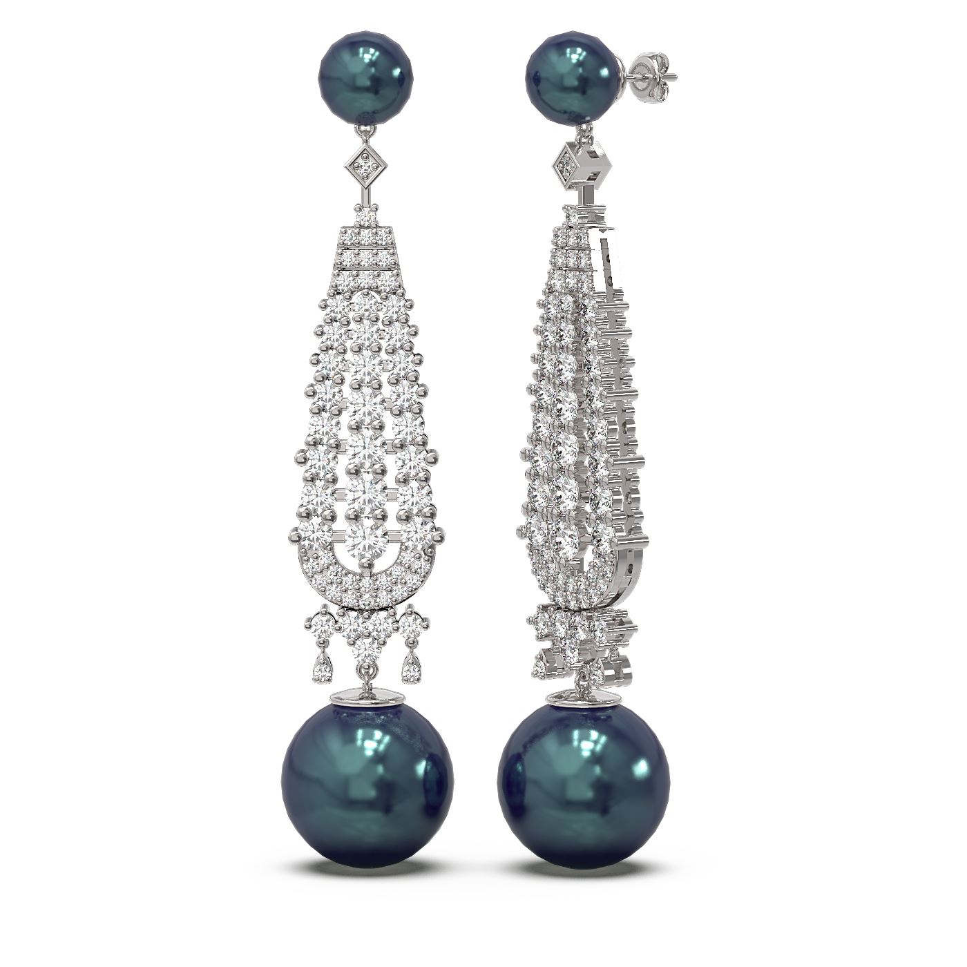 REF-267W5H - SKU: 55229 ---- 3.2 ctw Diamond & Pearl Earrings 18K White Gold