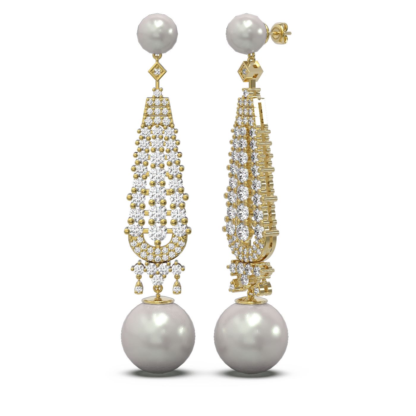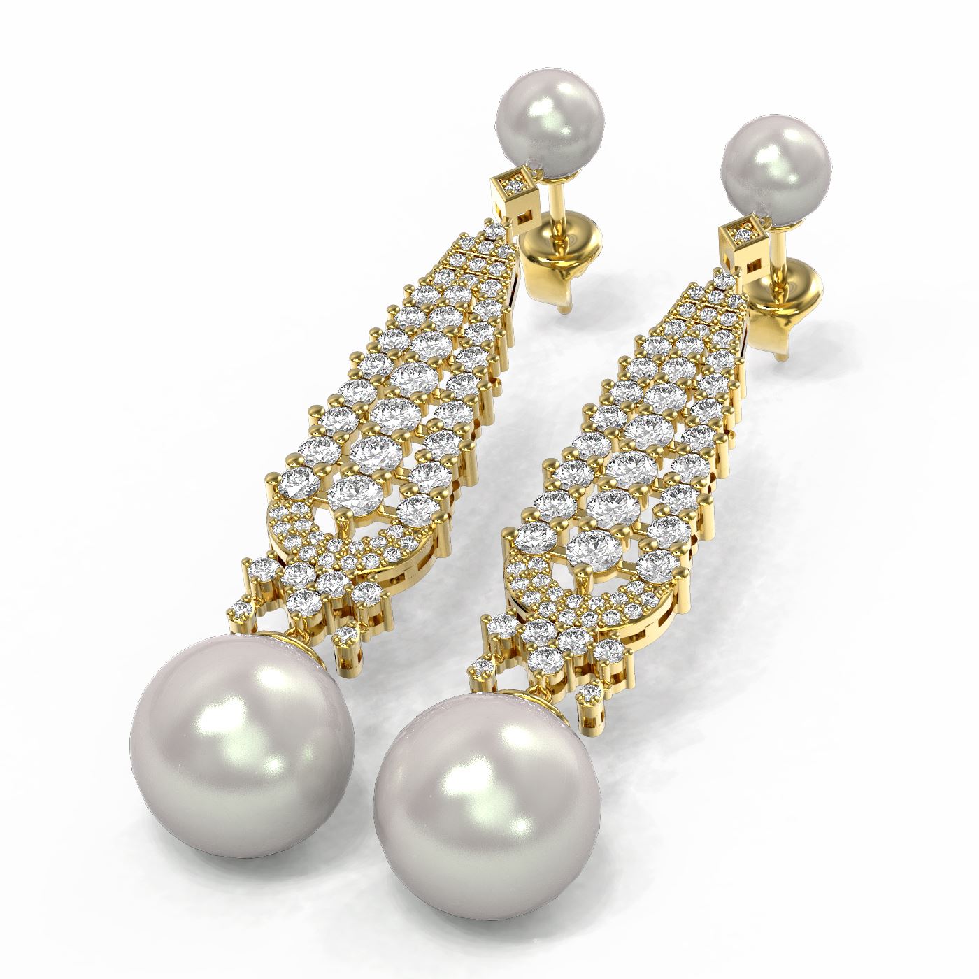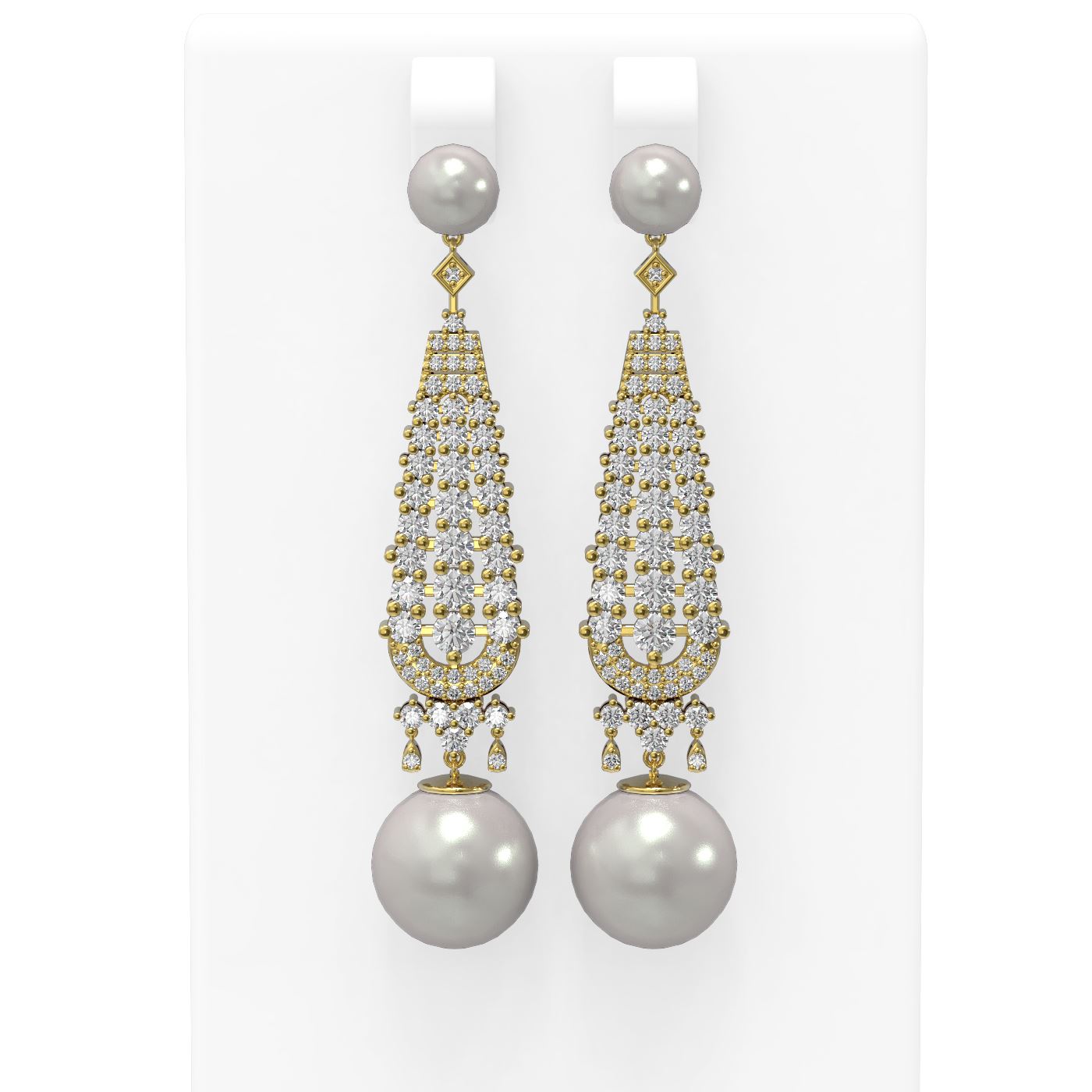 REF-267R5K - SKU: 55234 ---- 3.2 ctw Diamond & Pearl Earrings 18K Yellow Gold