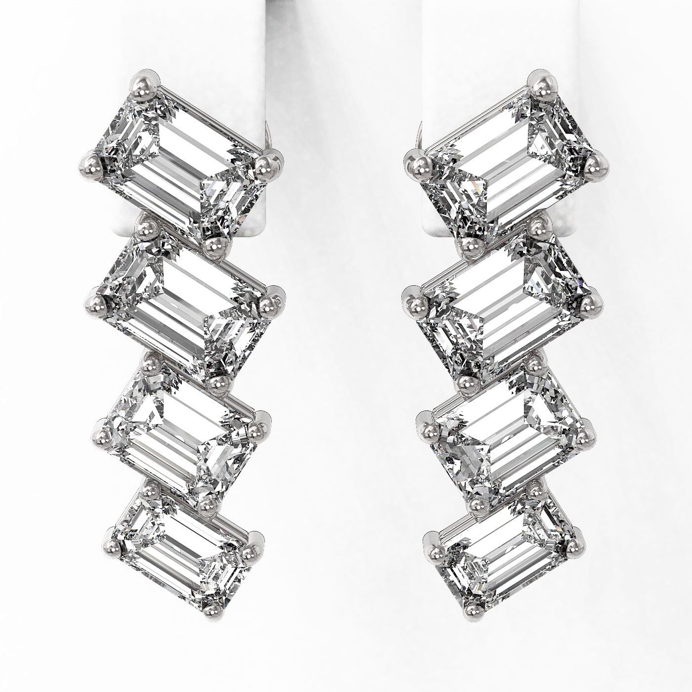 REF-691X8A - SKU: 46503 ---- 3.2 ctw Emerald Cut Diamond Earrings 18K White Gold