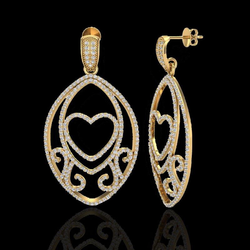 3.20 CTW Micro Pave VS/SI Diamond Designer Heart Earrings 18K Yellow Gold ---- Luxury Designer Brand Earring Appraised Retail Price at $18,500 ---- SKU Number US22586 18k Yellow gold Earring Size is 1 Inches, Earring measuring approx. 1" x 1 1/4" , weighing in total approx. 20 grams. Made in the USA and is stamped 18k, Main stone 3.50 carat total weight containing 410 pieces of H-J color with VS/SI quality Round shape cut Diamond , Stone #2 carat total weight containing pieces of color with quality shape cut