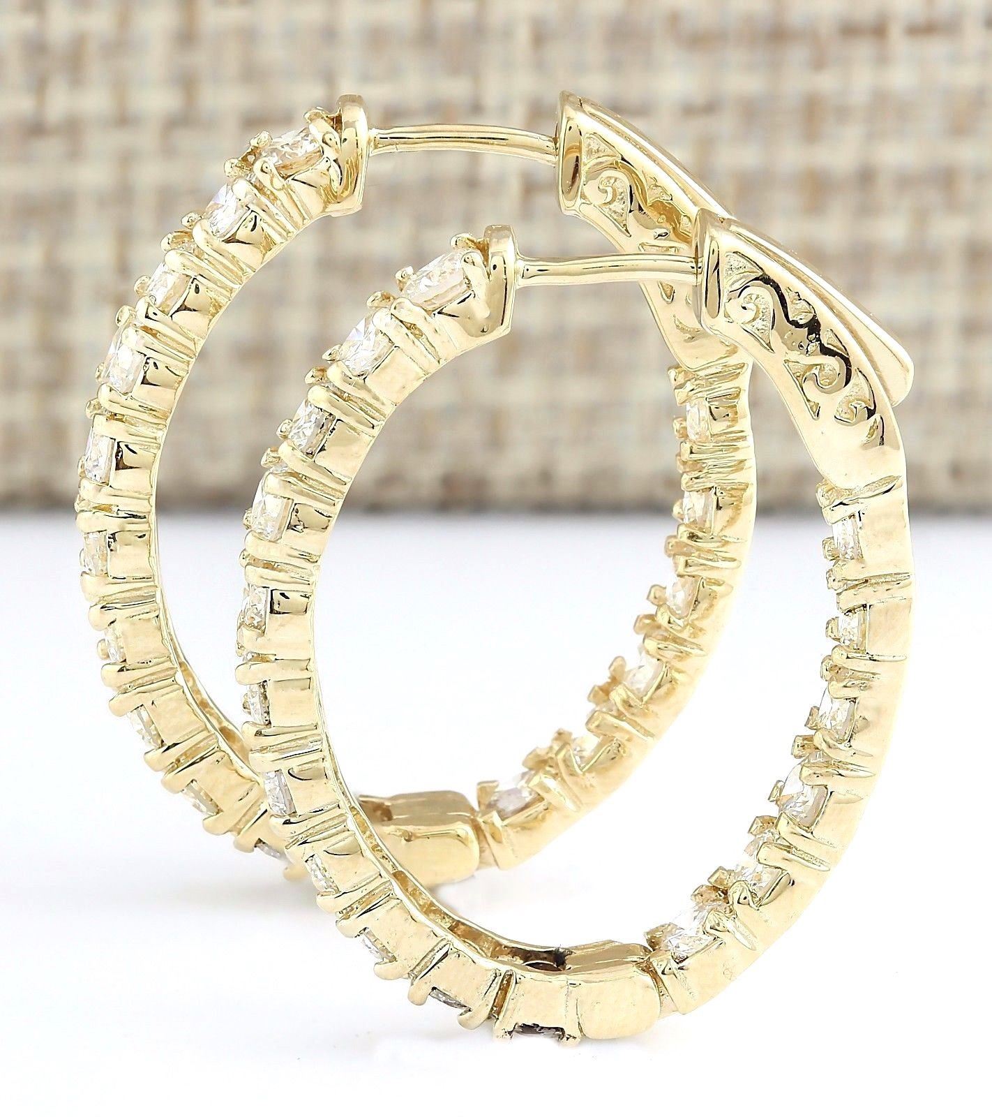 3.20 CTW Natural Diamond Hoop Earrings 18K Solid Yellow Gold