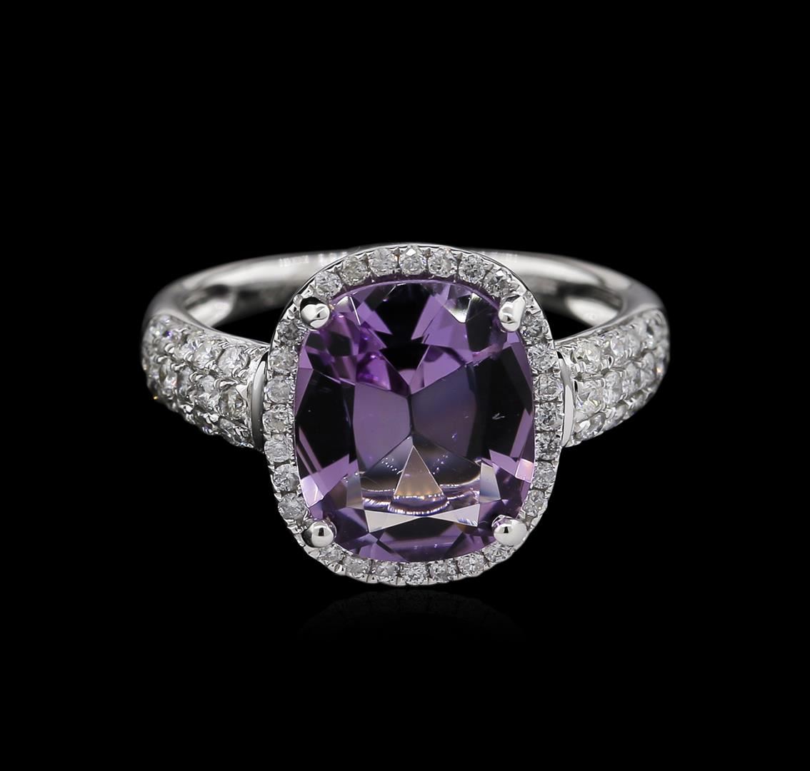 One ring featuring: 14KT white gold weighing 3.80 grams containing one amethyst with a total weight of 3.20ct and diamonds with a total weight of 0.50ct.
