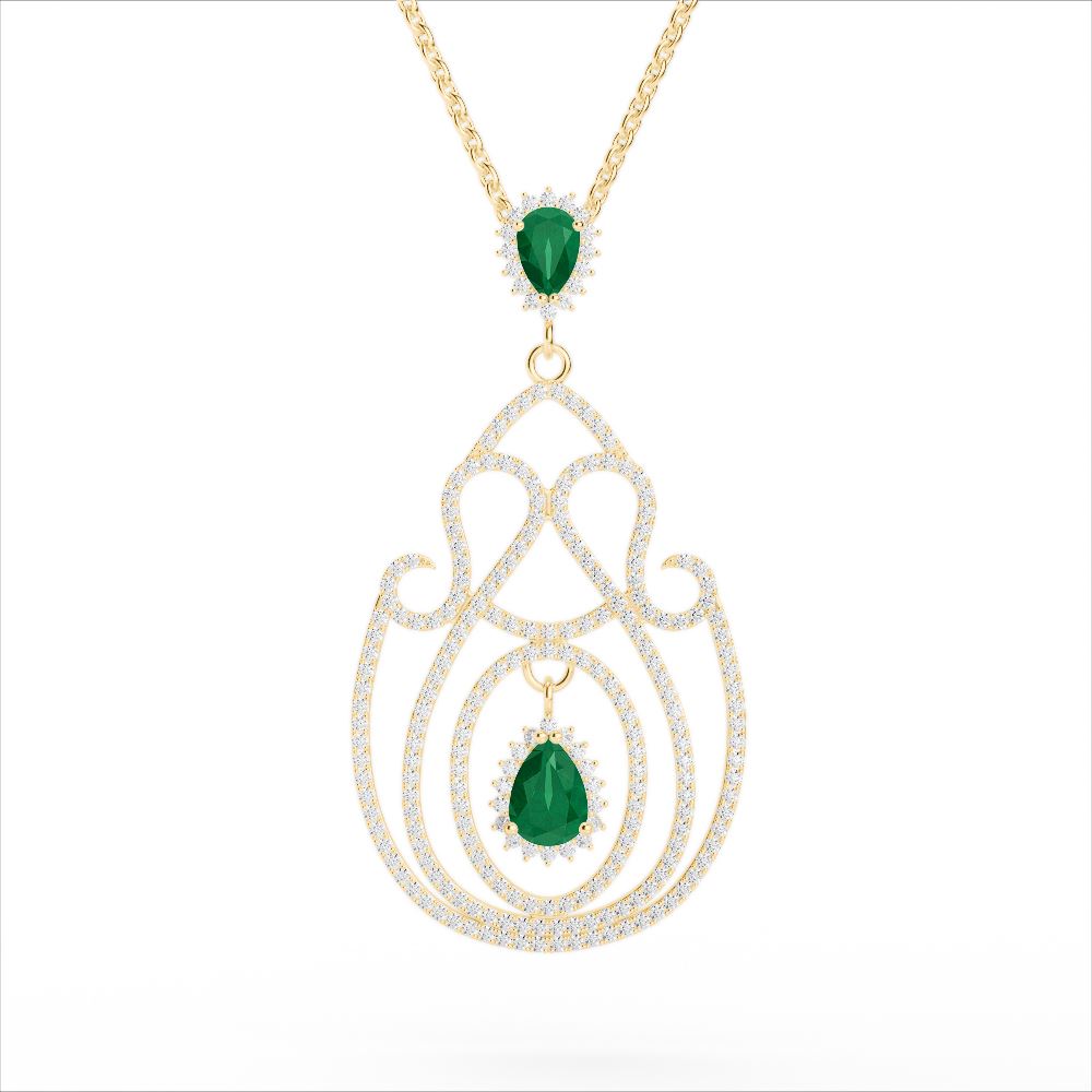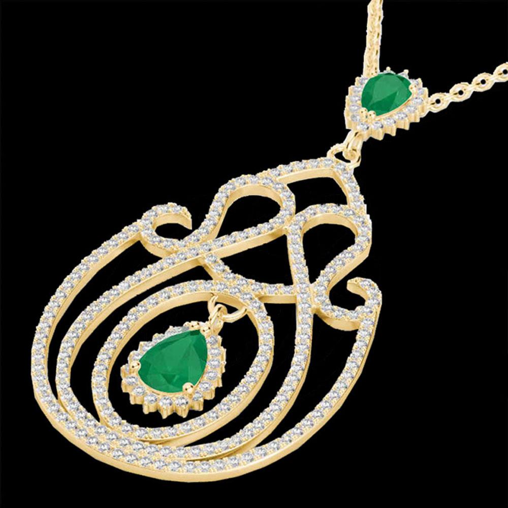 REF-212W8H - SKU: 22438 ---- 3.20 ctw Emerald & Micro Pave Diamond Heart Necklace 14k Yellow Gold