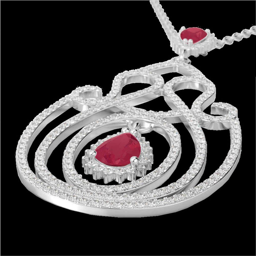 REF-212A8N - SKU: 22439 ---- 3.20 ctw Ruby & Micro Pave Diamond Heart Necklace 14k White Gold