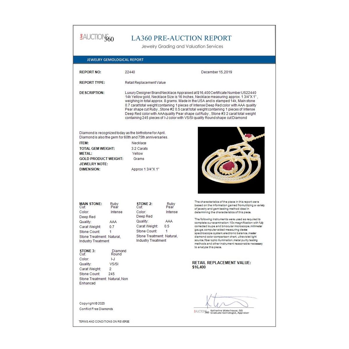 REF-212F8M - SKU: 22440 ---- 3.20 ctw Ruby & Micro Pave Diamond Heart Necklace 14k Yellow Gold