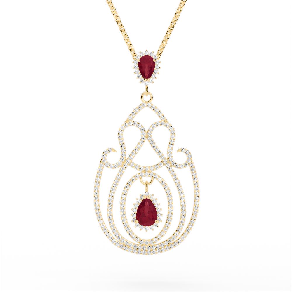 REF-212F8M - SKU: 22440 ---- 3.20 ctw Ruby & Micro Pave Diamond Heart Necklace 14k Yellow Gold