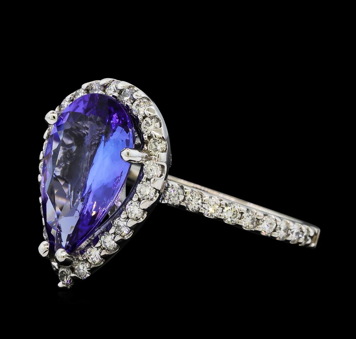 One Tanzanite and Diamond Ring including: 14KT White Gold weighing a total of 3.71 grams, Tanzanite weighing a total of 3.20ct, and 43 Diamonds weighing a total of 0.58ctw.