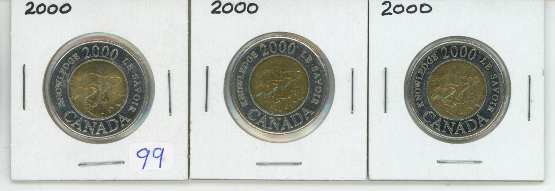 3 - 2000 "Knowledge" Canadian 2 dollar toonies