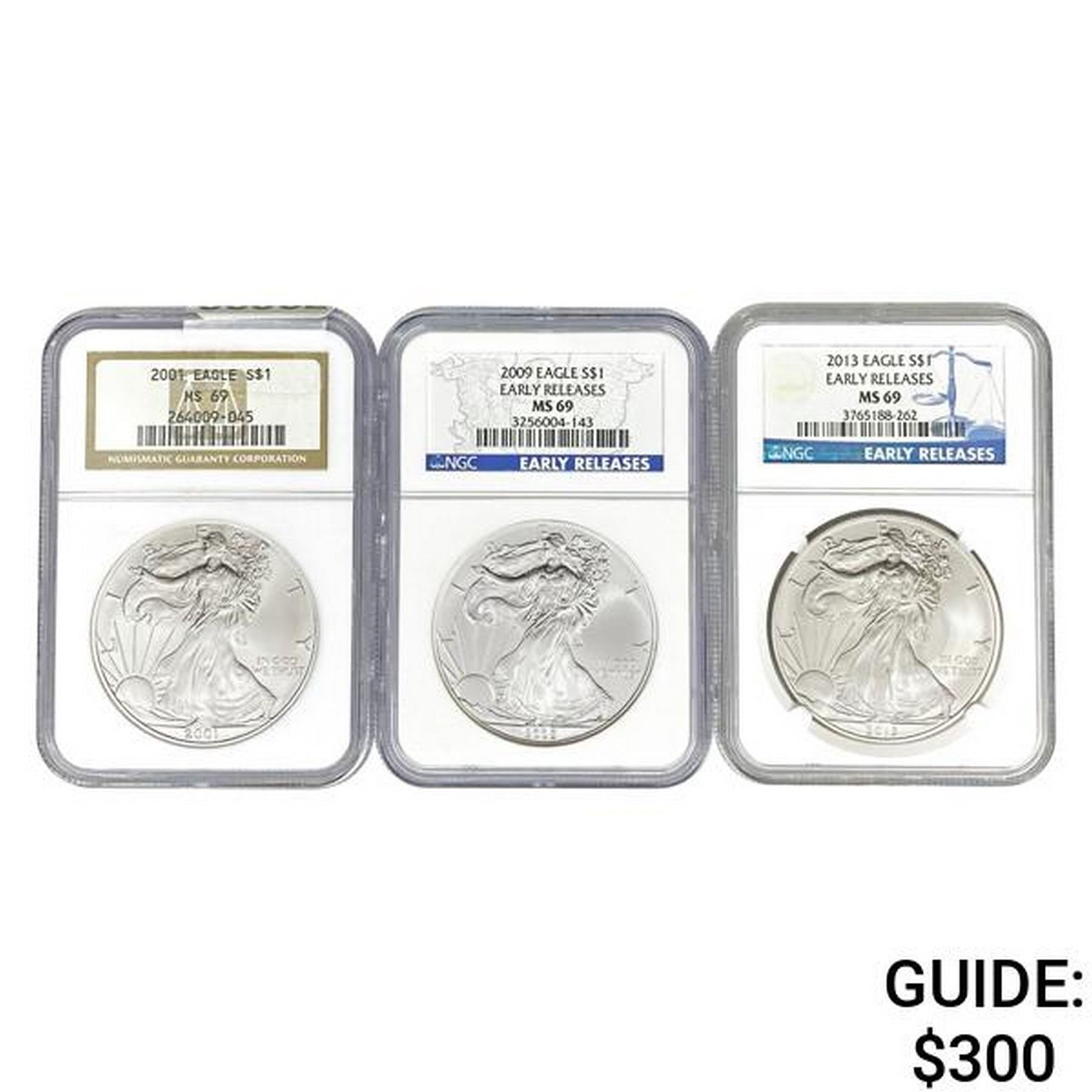 [3] 2001-2013 Silver Eagle $1 NGC MS69