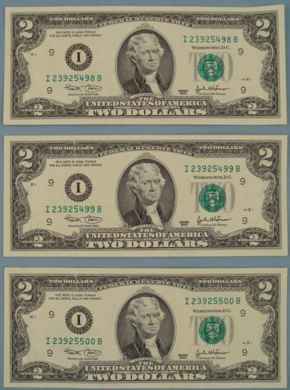 (3) 2003 $2 Notes, with Consecutive serial numbers