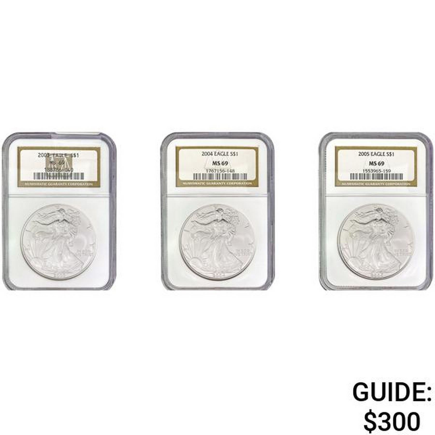 [3] 2003-2005 Eagle Silver $1 NGC MS69