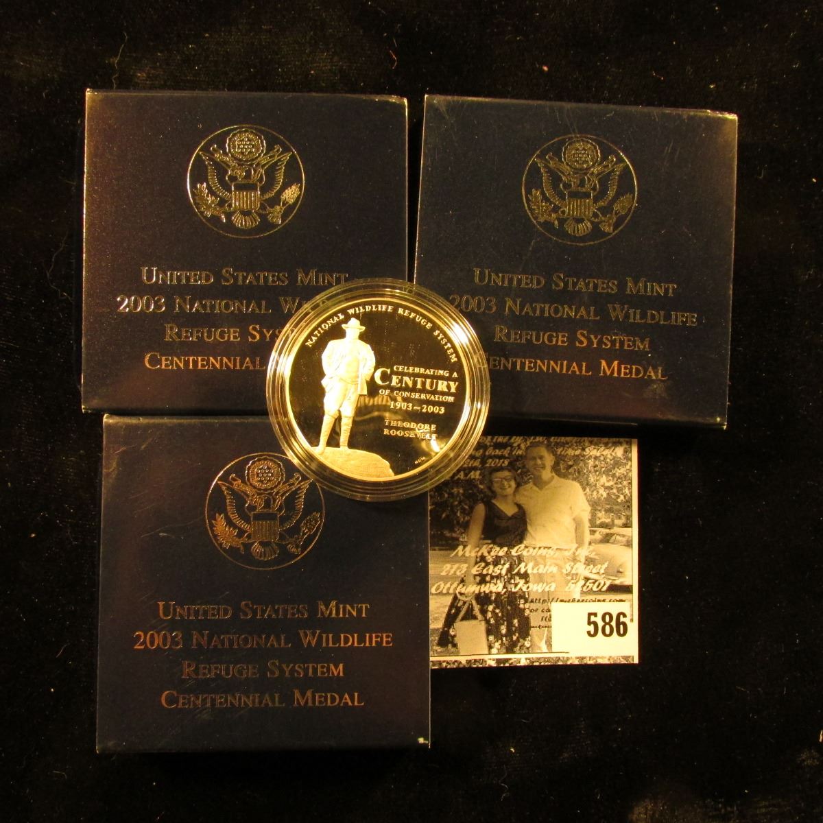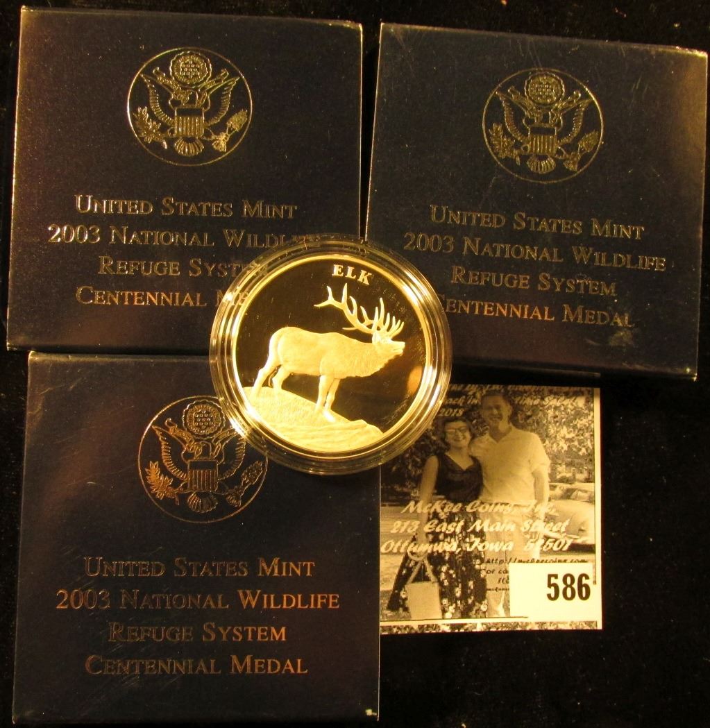 (3) 2003 "Elk" National Wildlife Refuge Centennial Medal in original box with literature, 1.5" diame