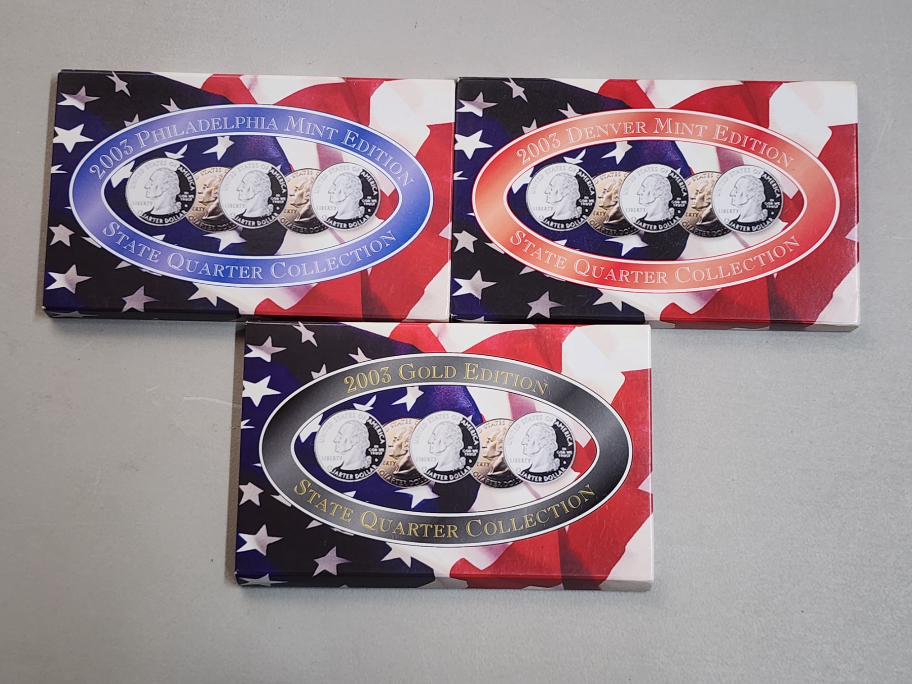(3) 2003 State Quarter Collection Sets: Gold, Philadelphia, Denver