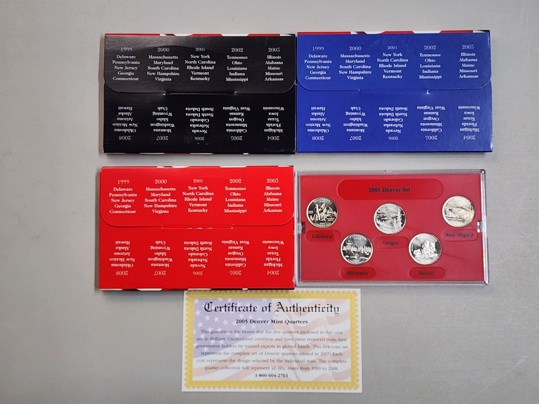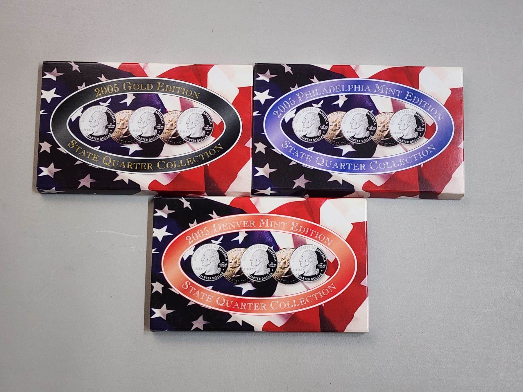 (3) 2005 State Quarter Collection Sets: Gold, Philadelphia, Denver