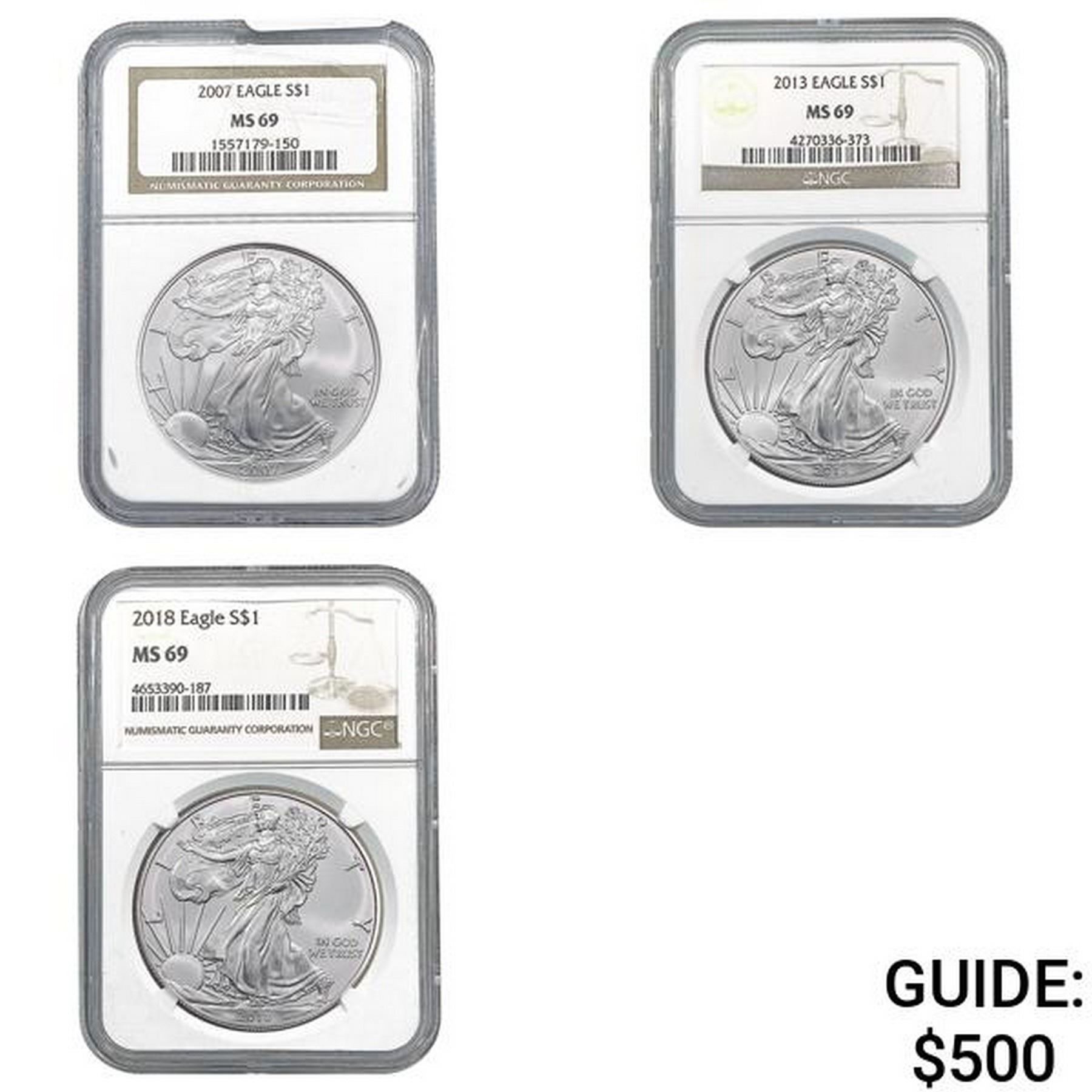 [3] 2007-2018 Silver Eagle $1 NGC MS69