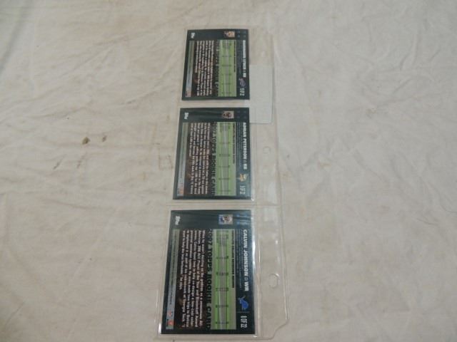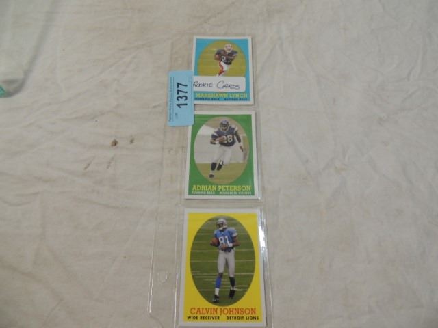 MARSHAWN LYNCH ADRIAN PETERSON CALVIN JOHNSON ROOKIE CARD LOT. ALL IN EXCELLENT CONDITION. AS SHOWN.