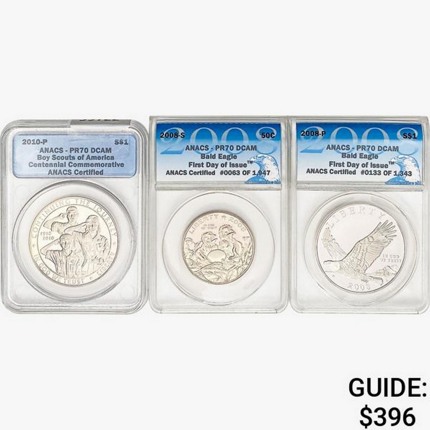 [3] 2008&2010 Assorted Silver Coinage ANACS PR70 DCAM