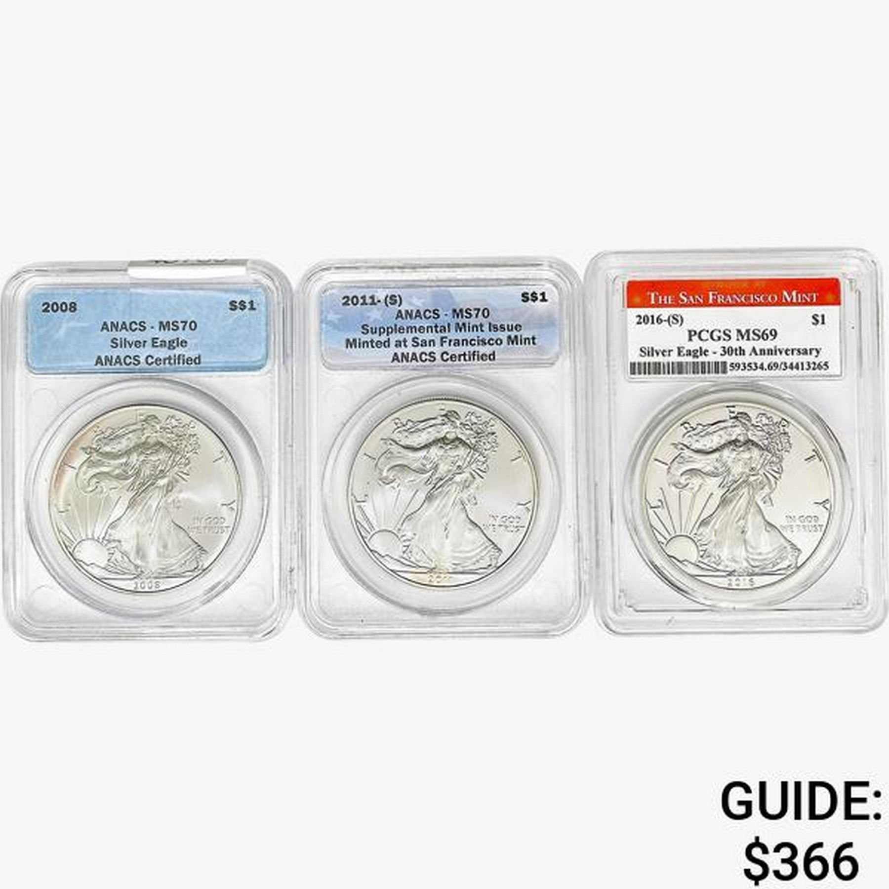 [3]2008-2016 Silver Eagle ANACS/PCGS MS69-70