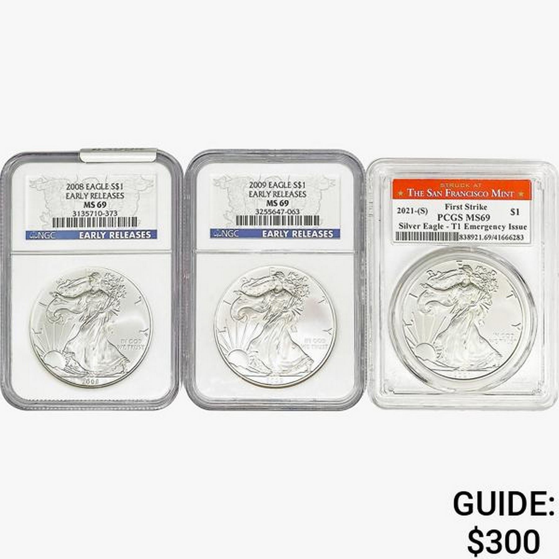 [3]2008-2021 Silver Eagle PCGS/NGC MS69