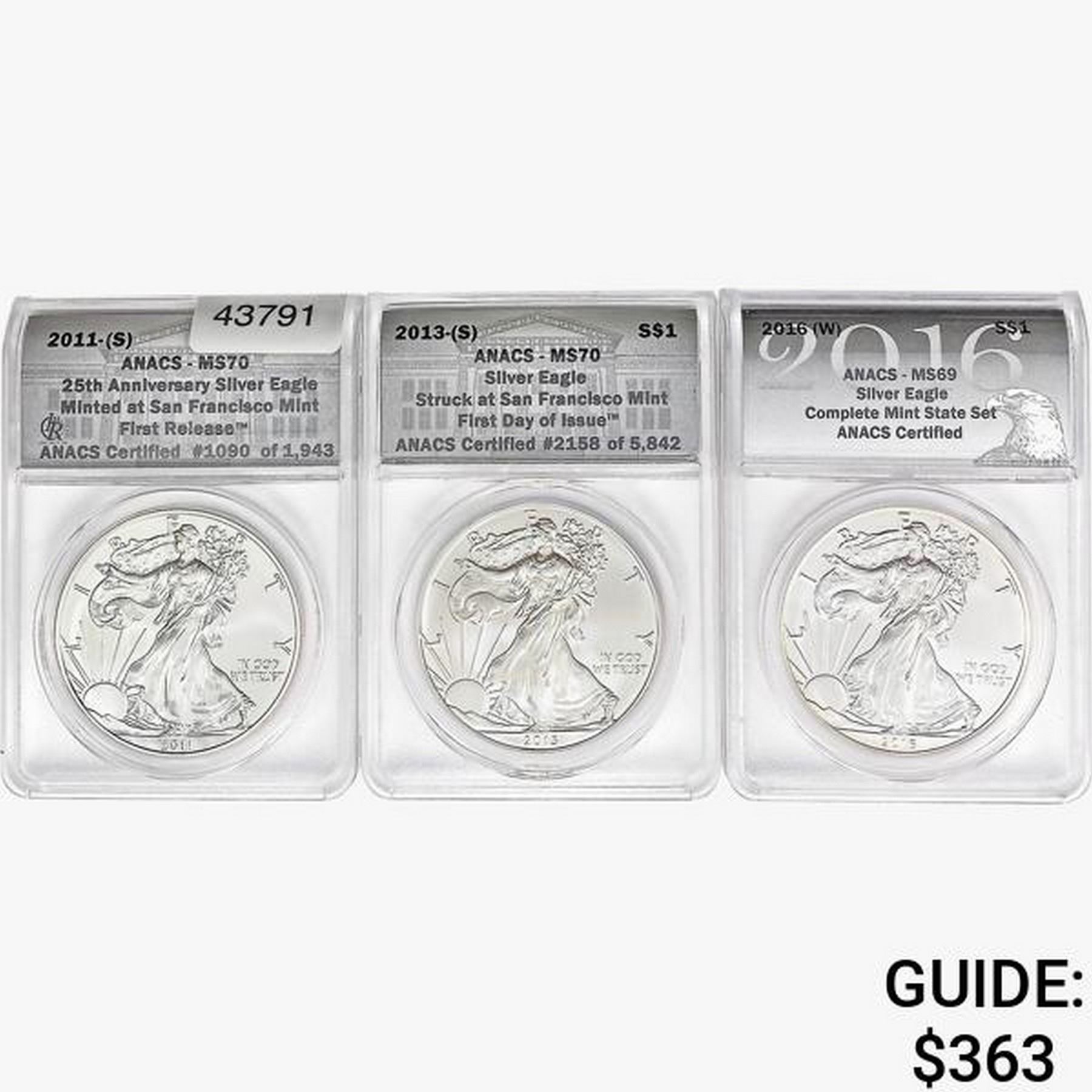 [3]2011-2016 Silver Eagle ANACS MS69-70