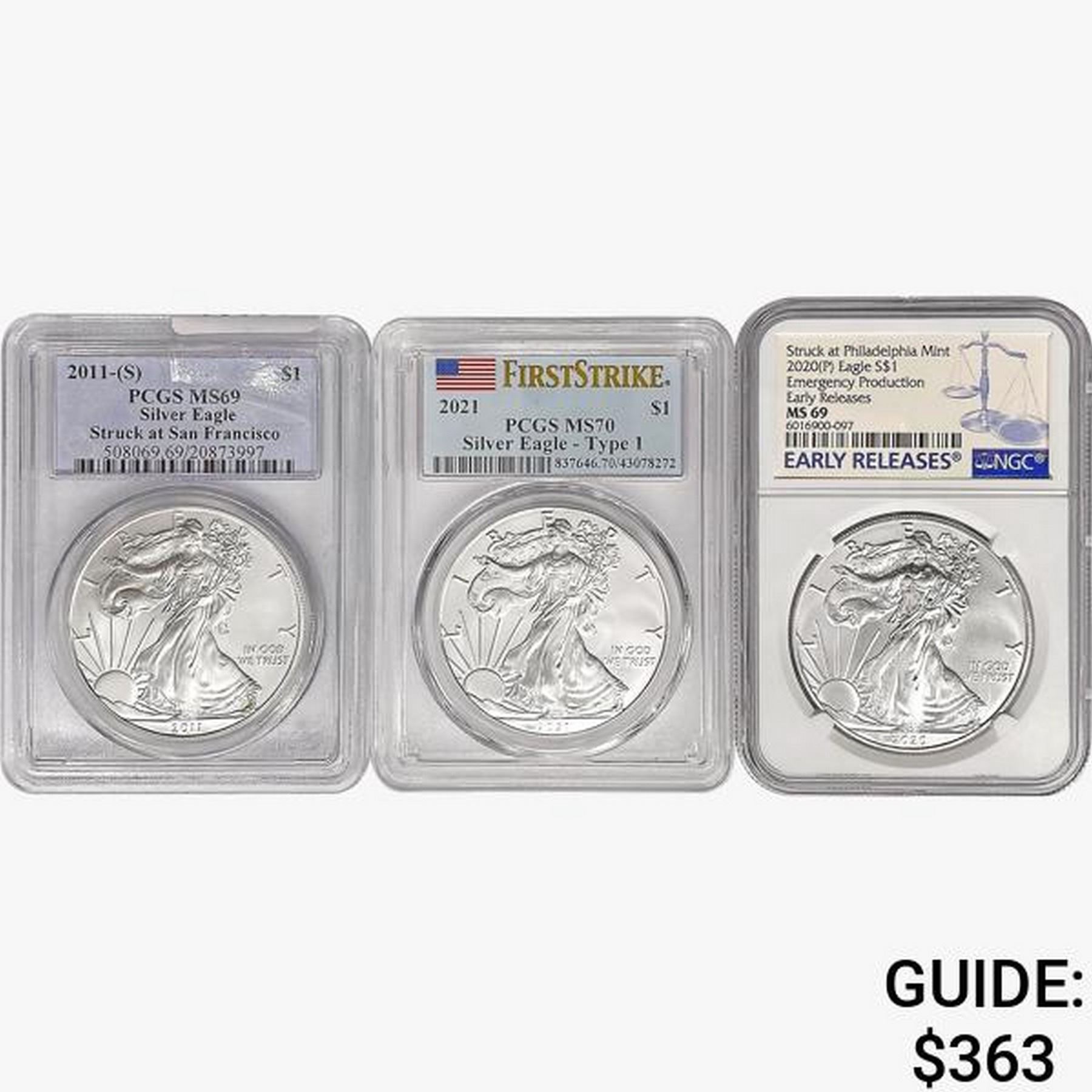 [3] 2011-2021 Silver Eagle NGC,PCGS MS69/70 Type 1