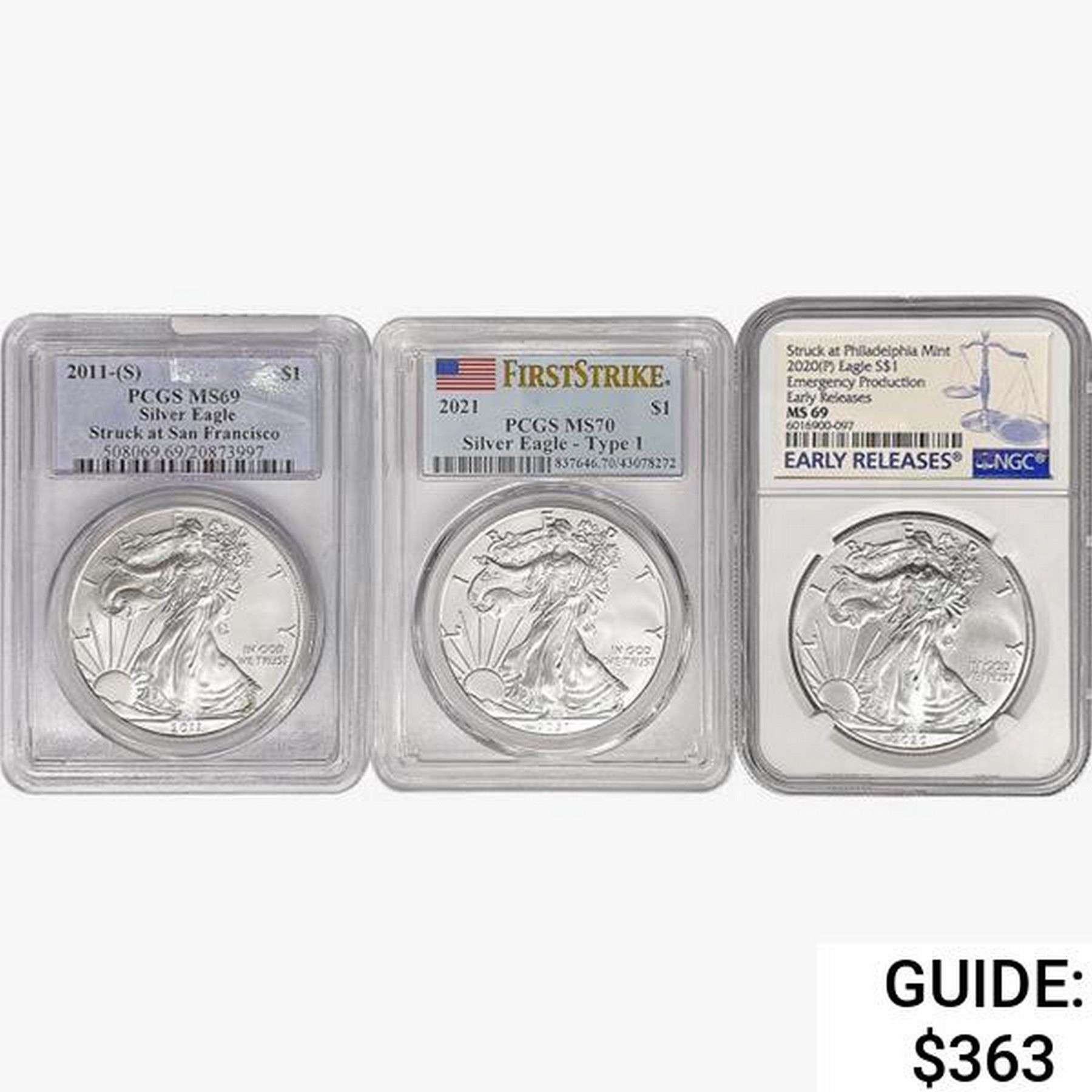 [3] 2011-2021 Silver Eagle NGC,PCGS MS69/70 Type 1