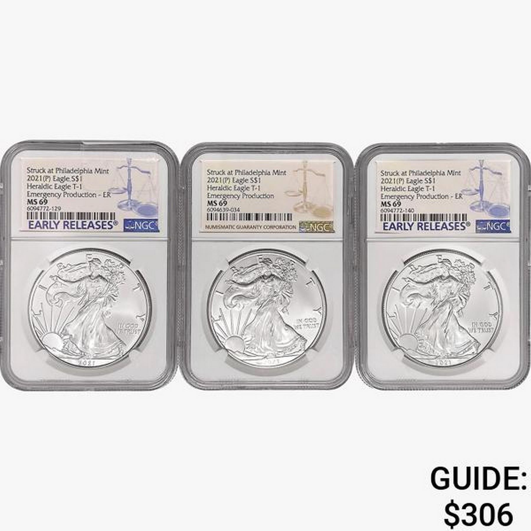[3] 2021 A.S.E. NGC MS69 Heraldic Eagle T-1