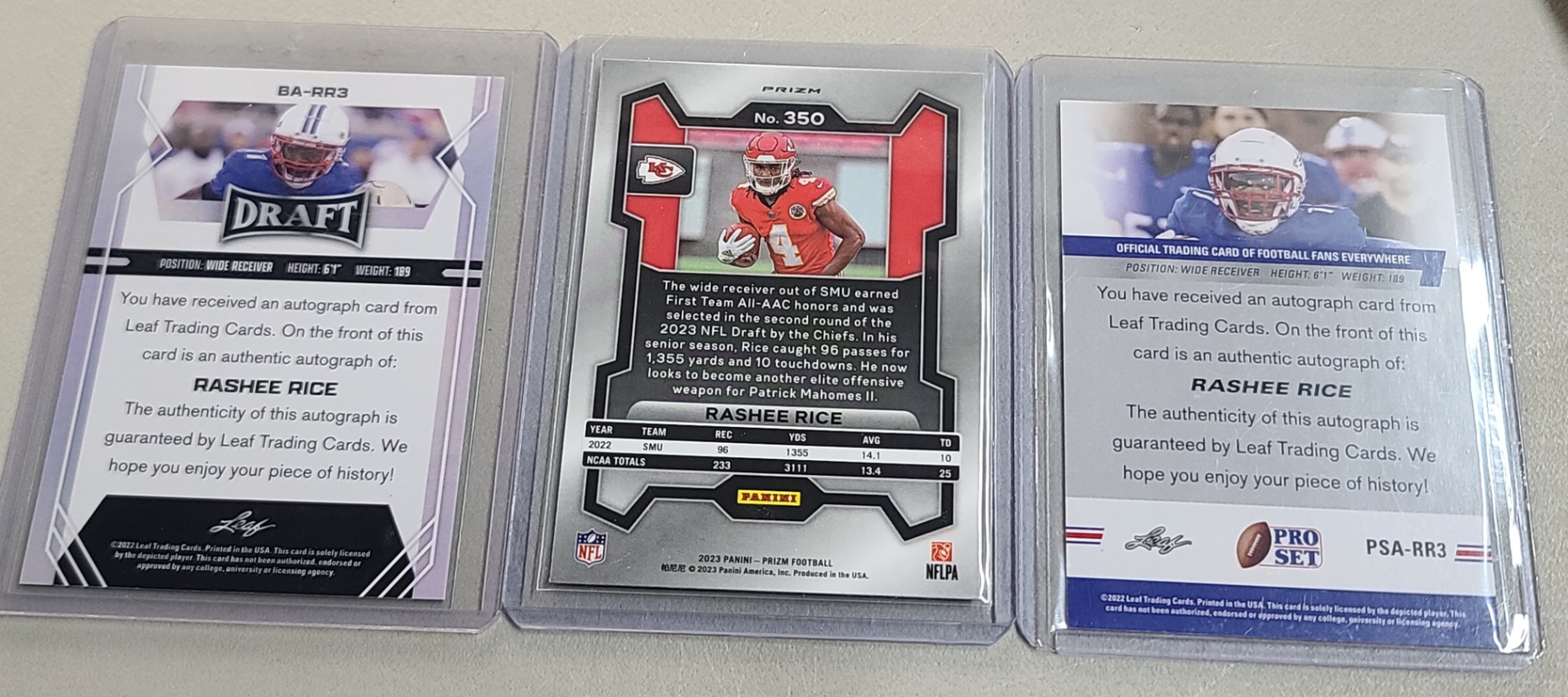 (3) 2022 Panini & Leaf Rashee Rice AUTO & Rookie Football Trading Cards