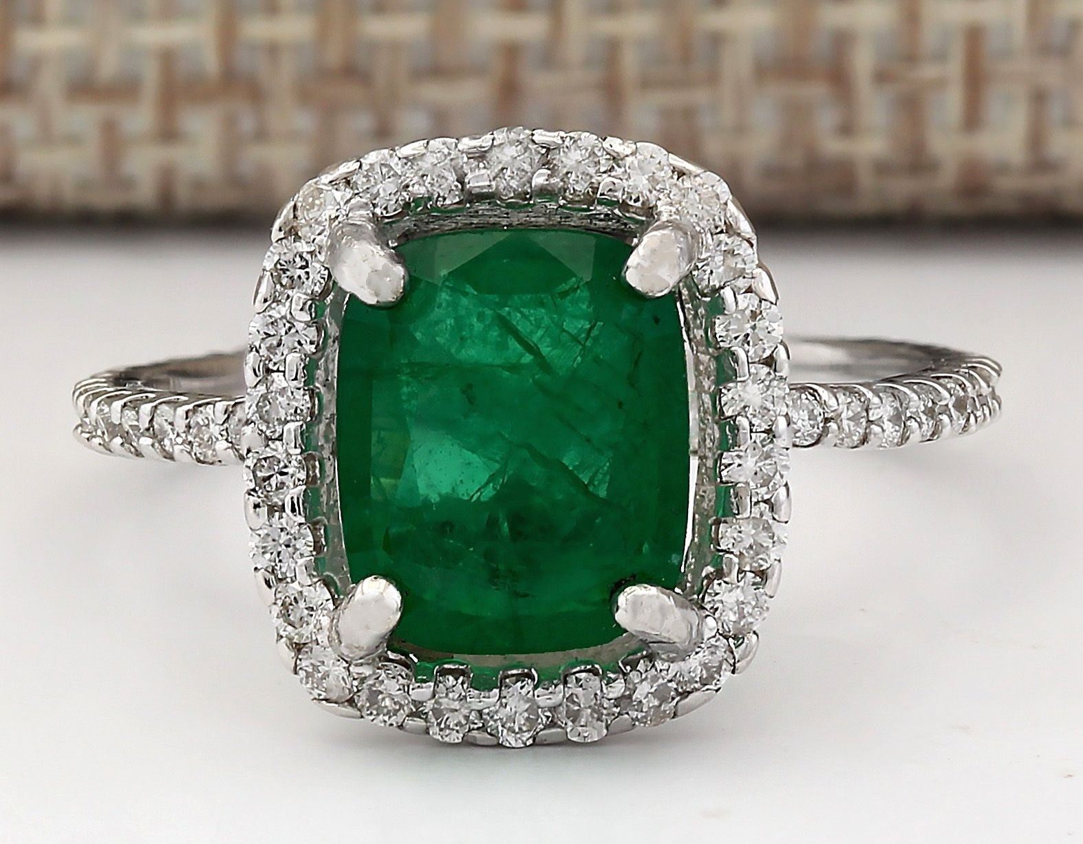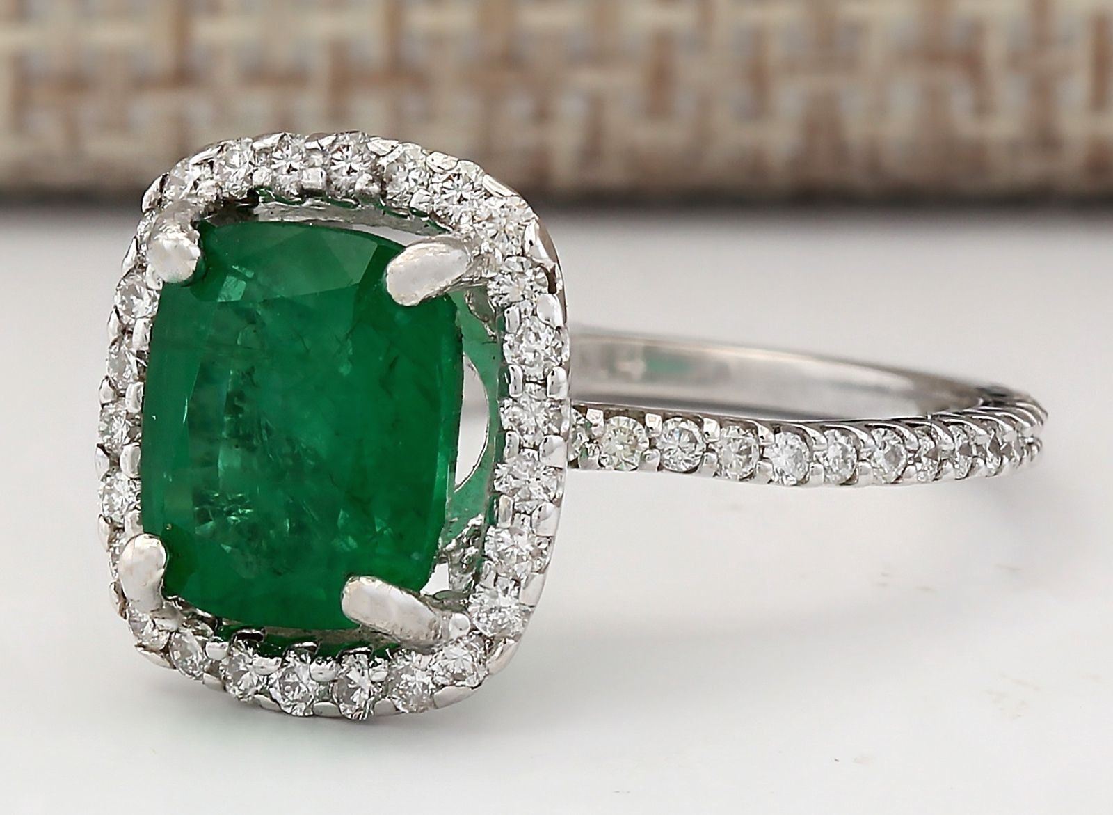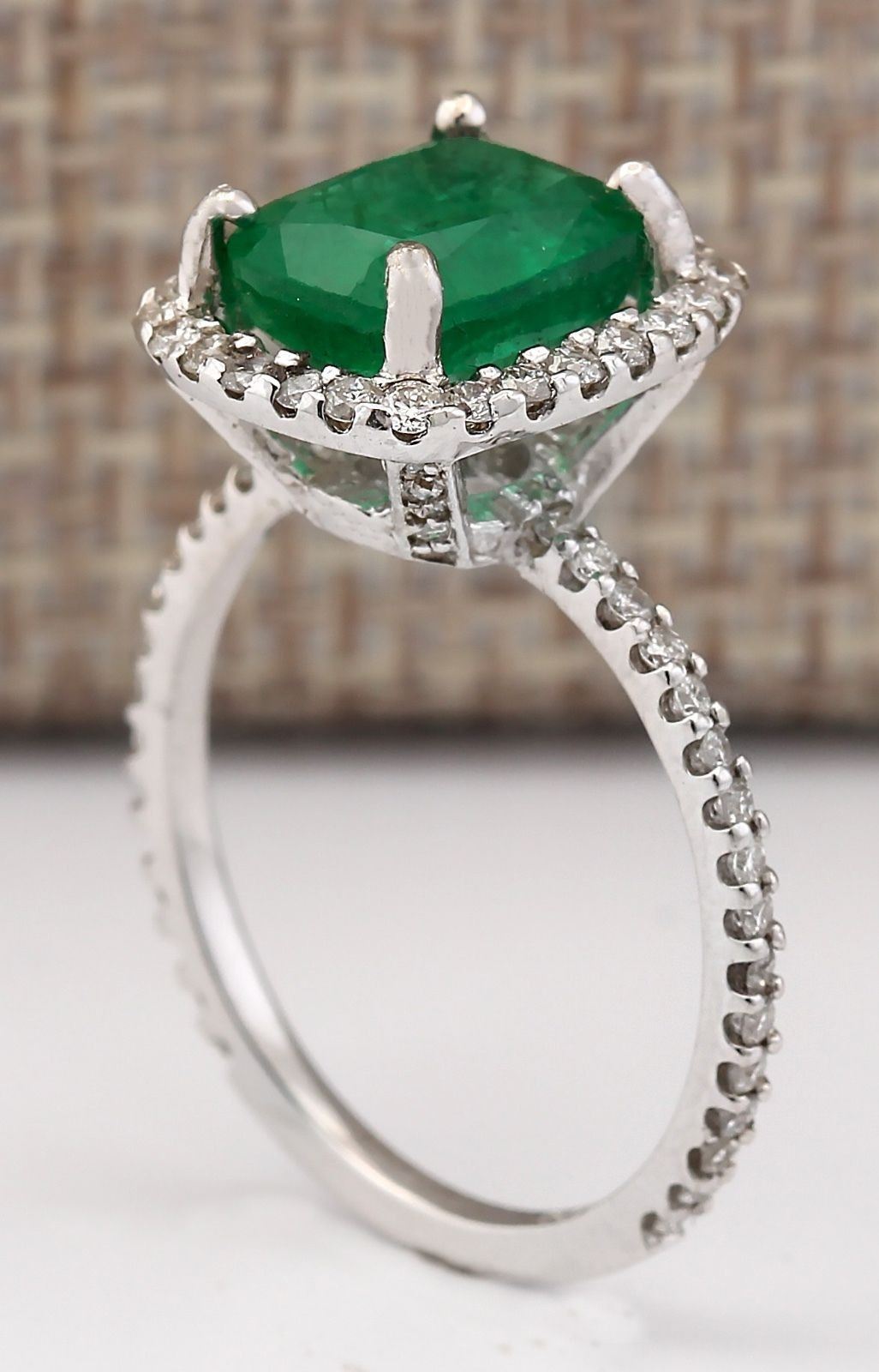 3.21 CTW Natural Emerald And Diamond Ring In 18K White Gold