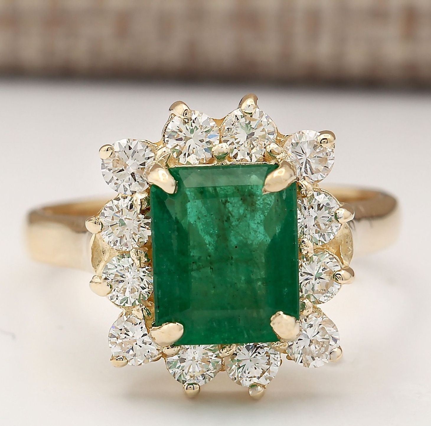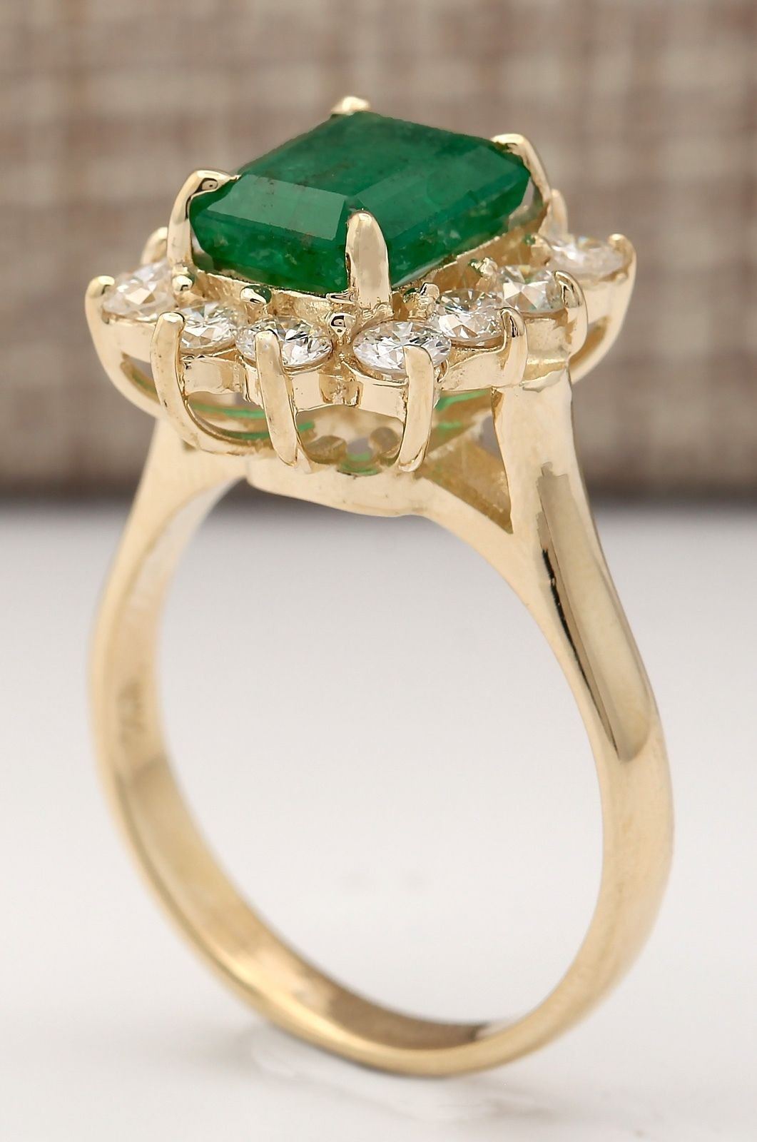 3.21 CTW Natural Emerald And Diamond Ring In 18K Yellow Gold