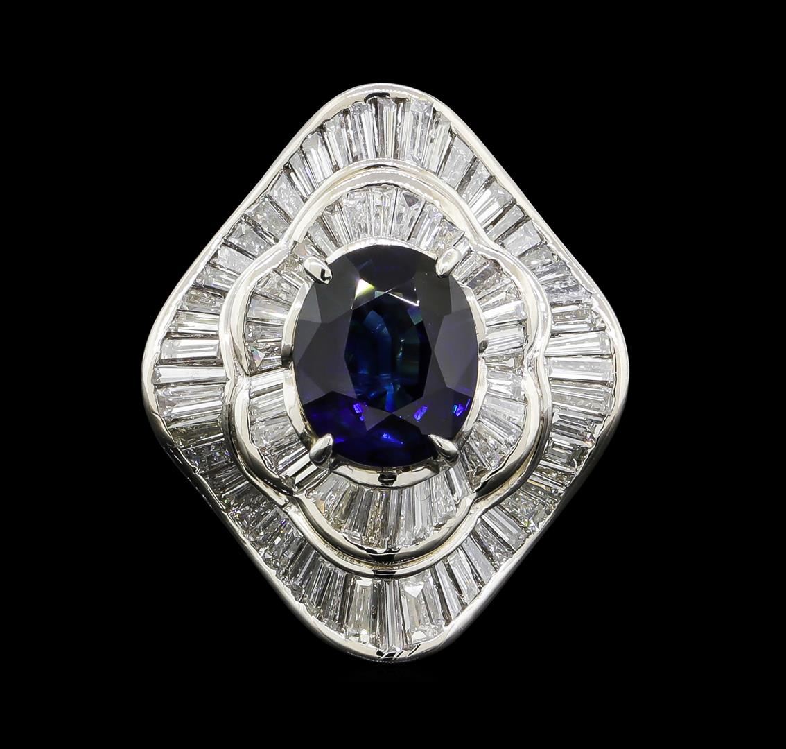One ring featuring: Platinum containing Sapphire with a total weight of 3.21ct and Diamonds with a total weight of 2.36ct. Total Weight of Ring: 15.1 grams.