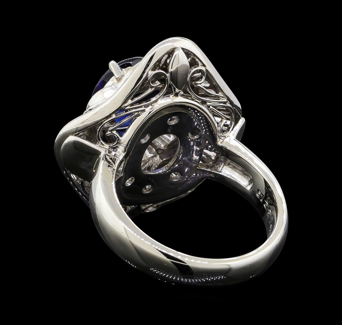 One ring featuring: Platinum containing Sapphire with a total weight of 3.21ct and Diamonds with a total weight of 2.36ct. Total Weight of Ring: 15.1 grams.