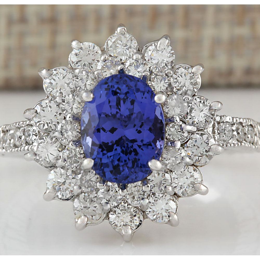 3.22 CTW Natural Tanzanite And Diamond Ring In 18K White Gold