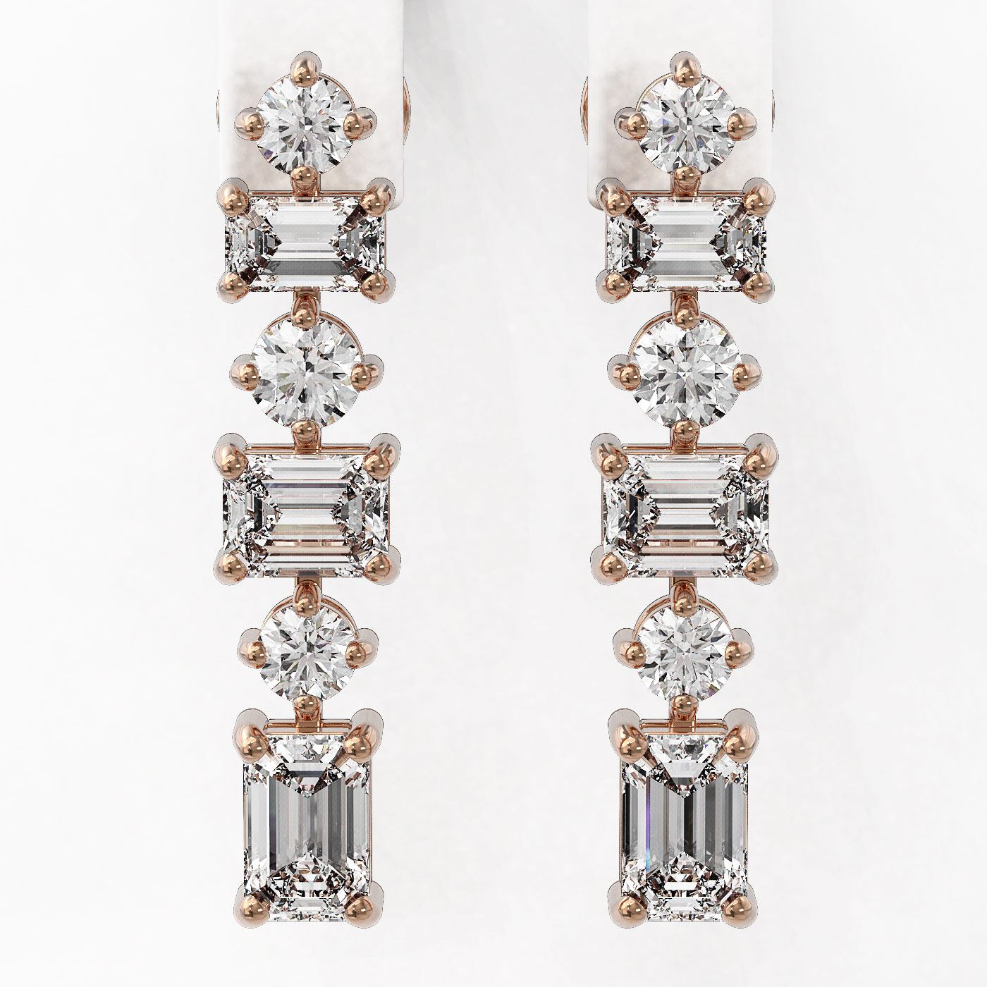 SKU: 46558 ---- 3.22 ctw Emerald Cut Diamond Designer Earrings 18K Rose Gold