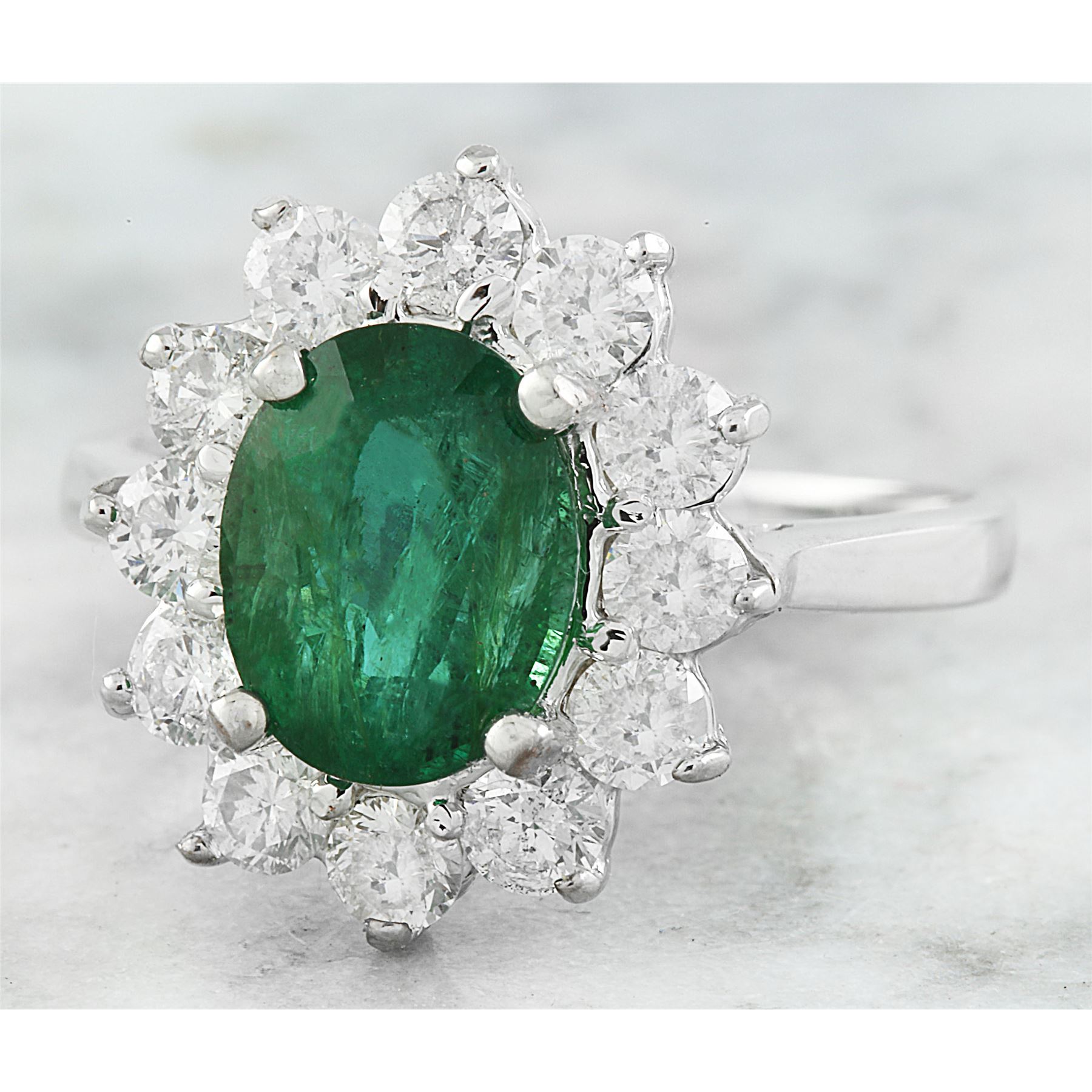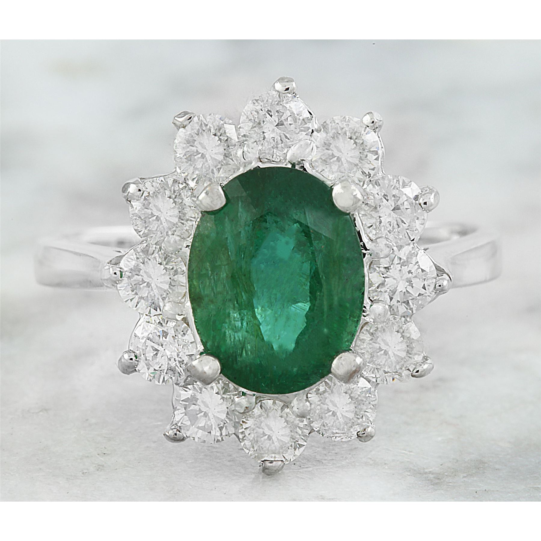 3.23 CTW Emerald 18K White Gold Diamond Ring