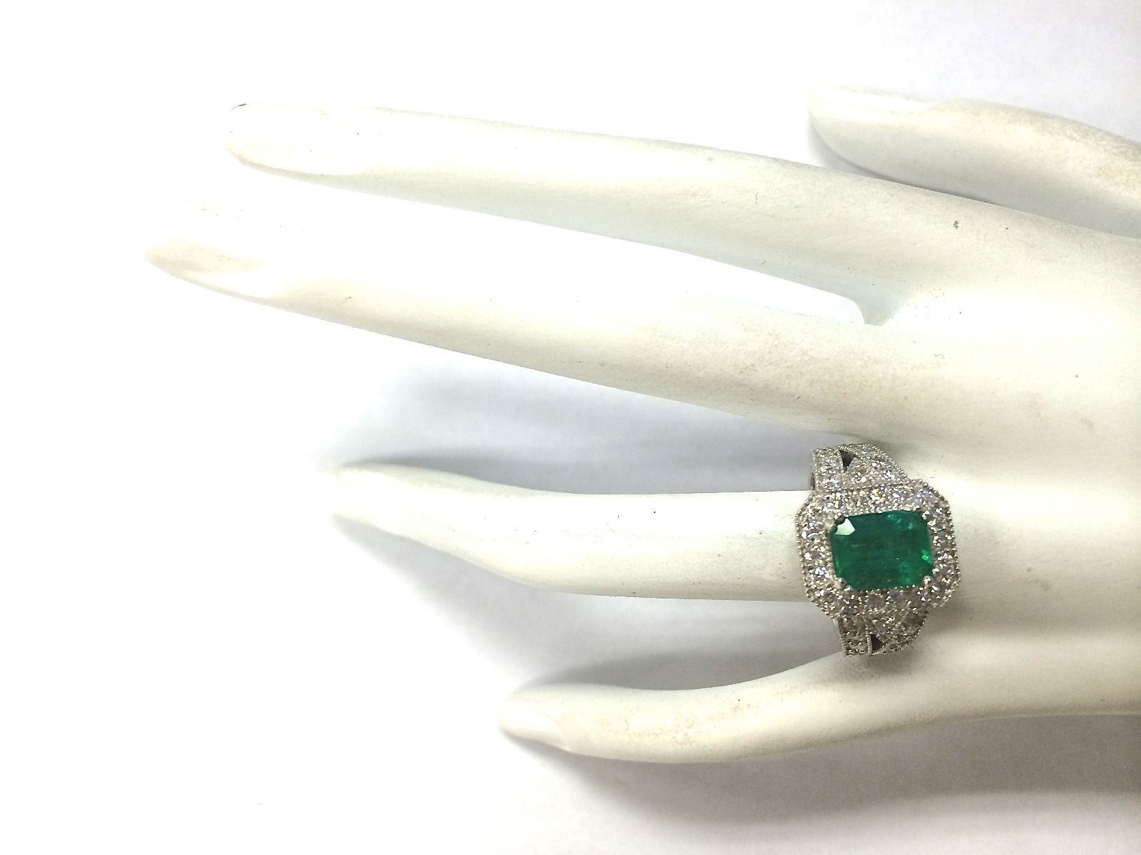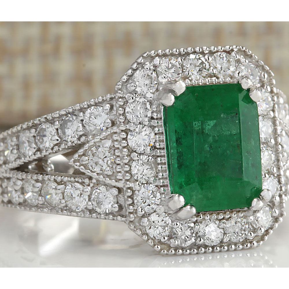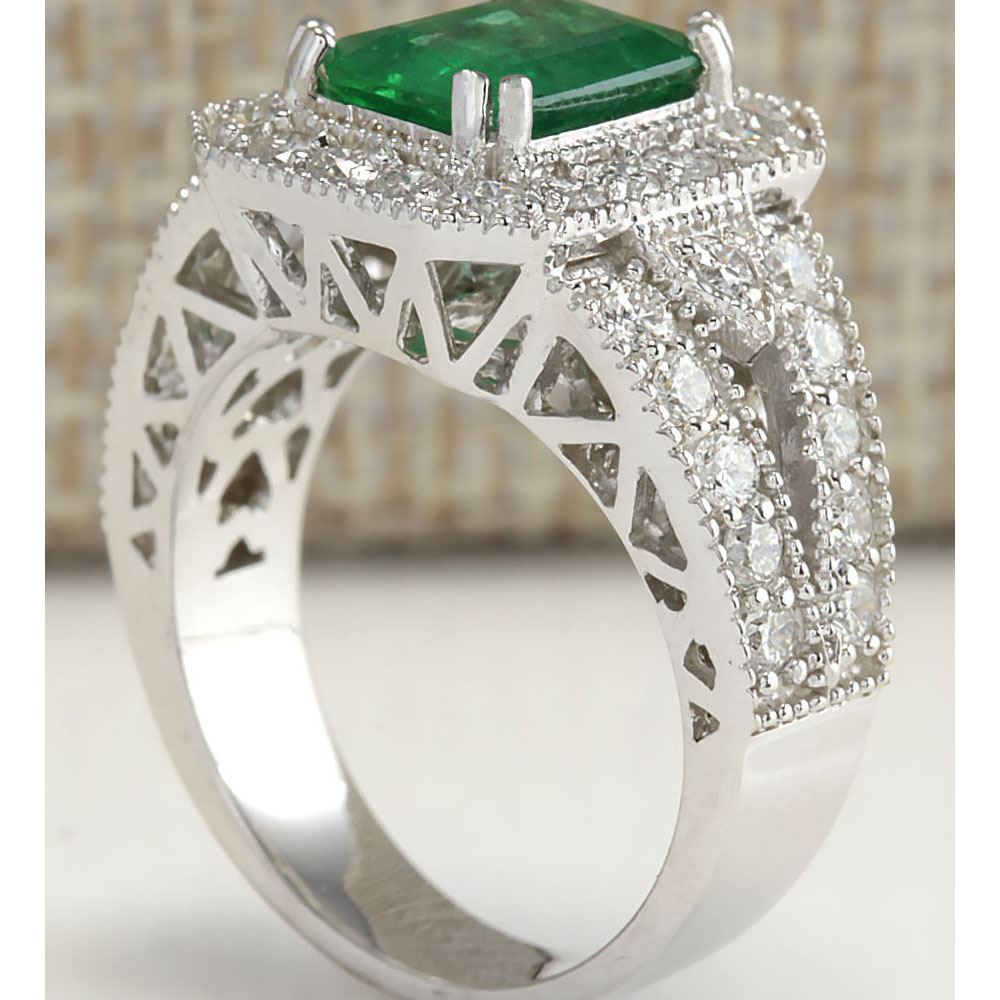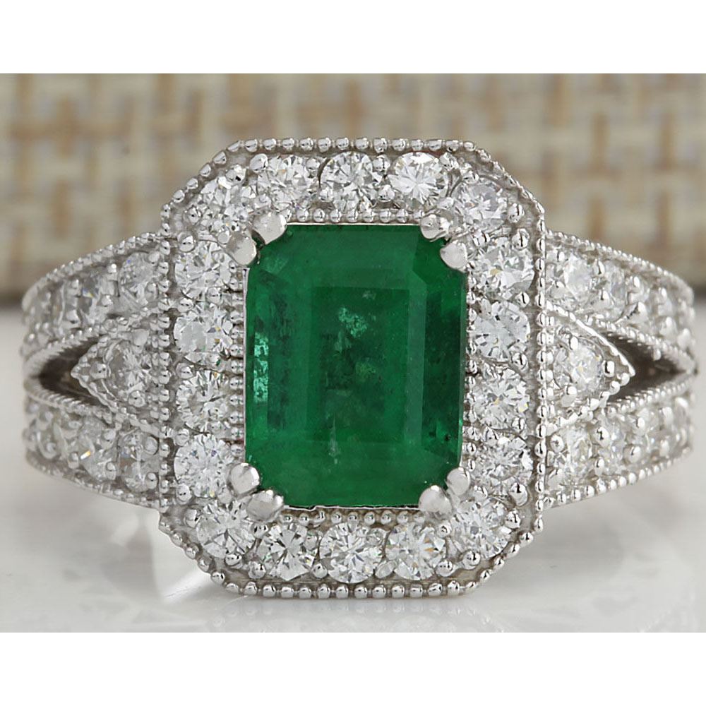 3.23 CTW Natural Colombian Emerald And Diamond Ring 14K Solid White Gold