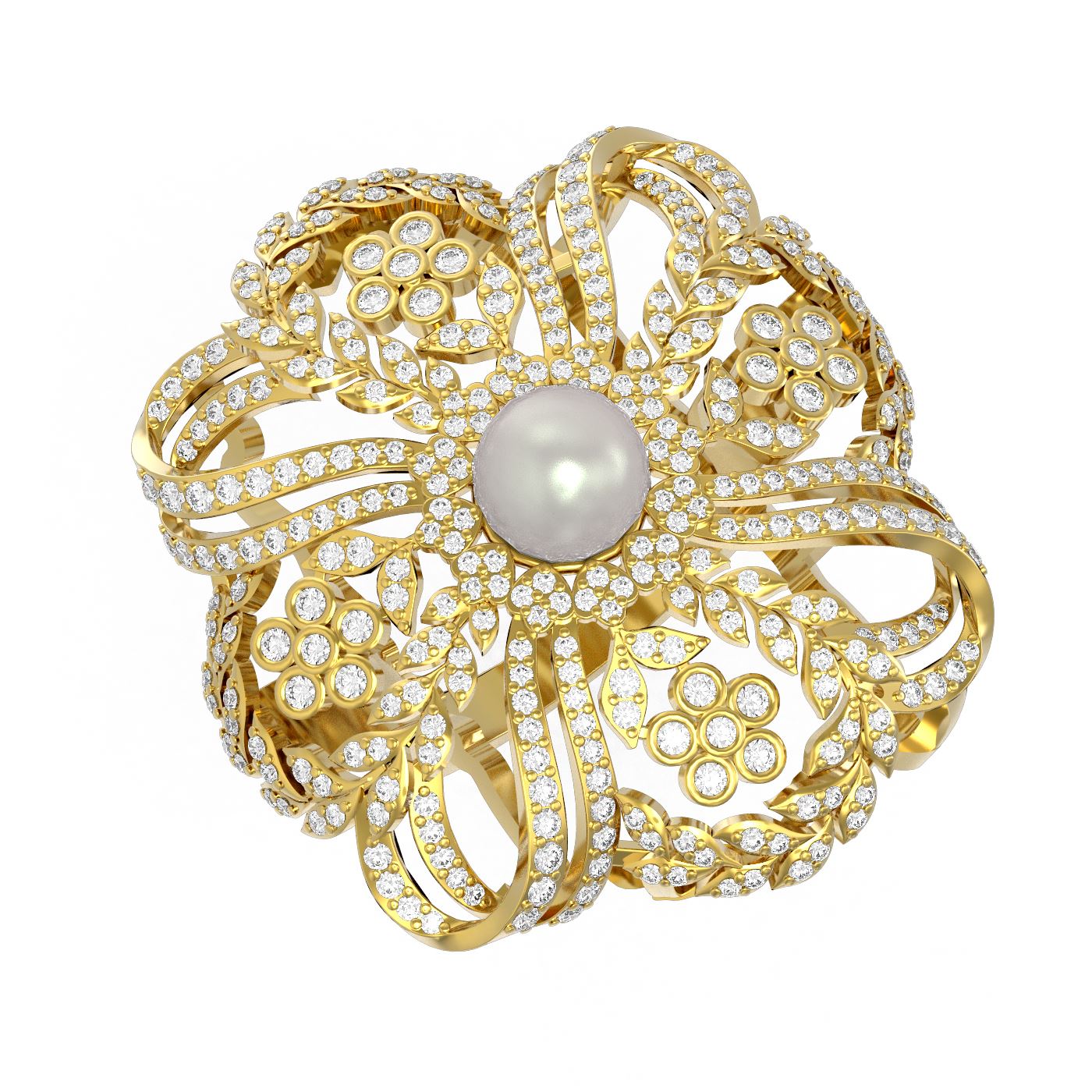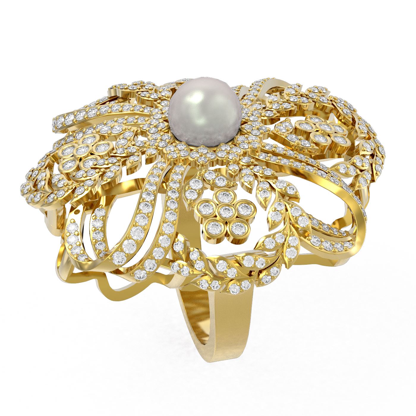 REF-396H2R - SKU: 54892 ---- 3.23 ctw Diamond & Pearl Ring 18K Yellow Gold