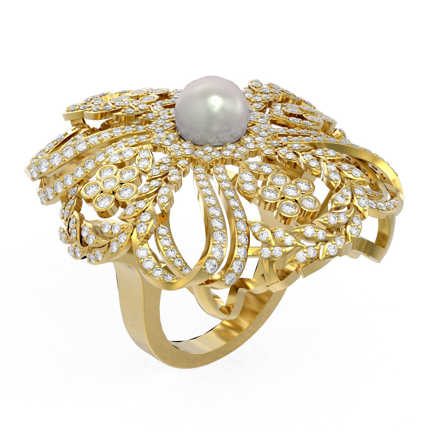 REF-396H2R - SKU: 54892 ---- 3.23 ctw Diamond & Pearl Ring 18K Yellow Gold