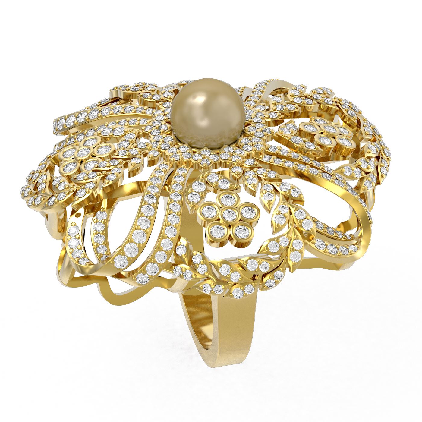 SKU: 54886 ---- 3.23 ctw Diamond & Pearl Ring 18K Yellow Gold