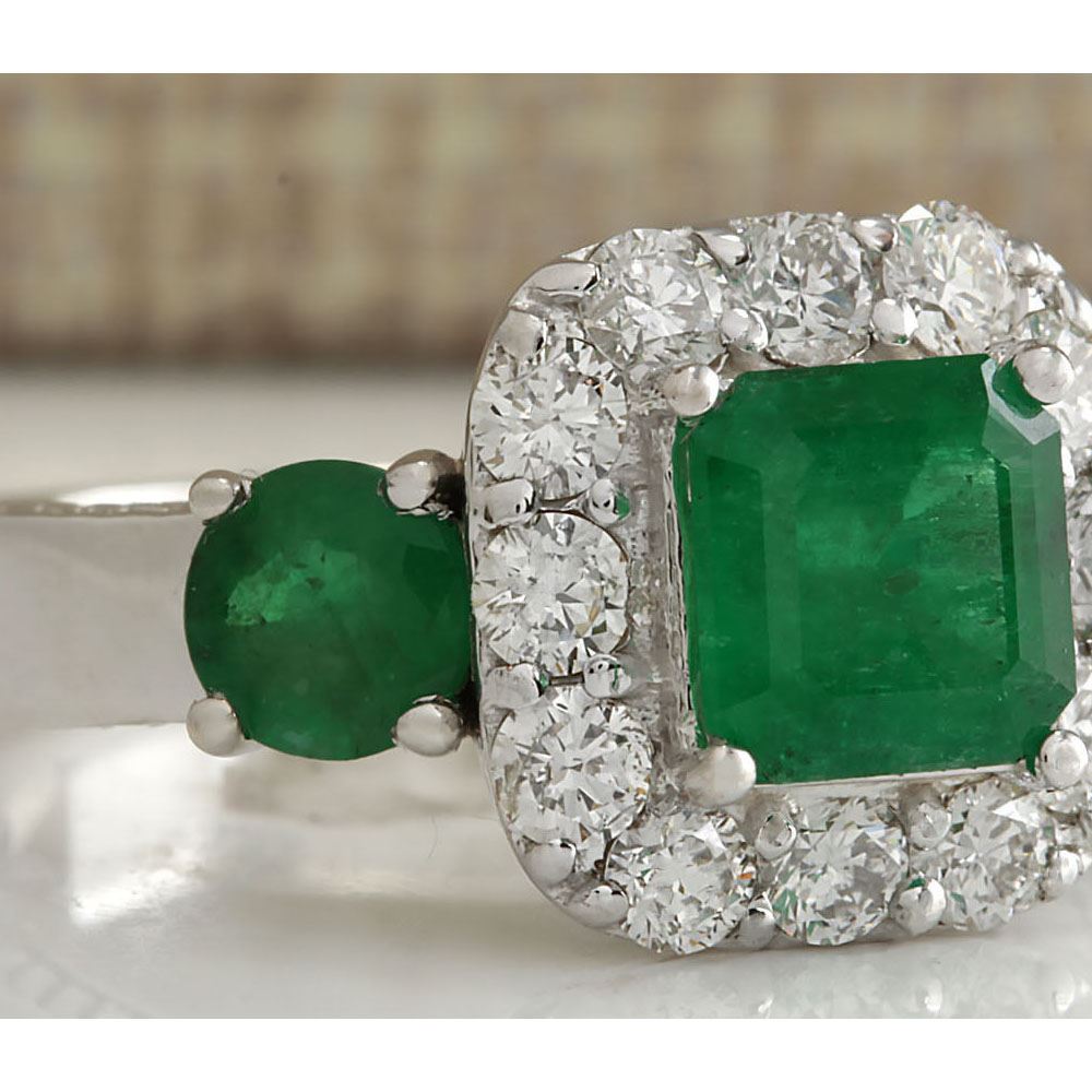 3.24 CTW Natural Emerald And Diamond Ring 14K Solid White Gold
