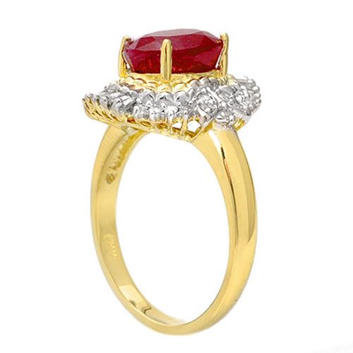 3.24 CTW Ruby & Diamond Ring 14K Yellow Gold ---- Luxury Designer Brand Ring Appraised Retail Price at $4,150 ---- SKU Number US13065 14k Yellow gold Ring Size is 6.5, Ring measuring approx. 3/4" x 7/8" , weighing in total approx. 4.7 grams. Made in the USA and is stamped 14k, Main stone 2.76 carat total weight containing 1 pieces of Mid-Opaque-Deep Red color with AAA quality Oval shape cut Ruby , Stone #2 0.48 carat total weight containing 36 pieces of H-I color with VS/SI quality Round shape cut