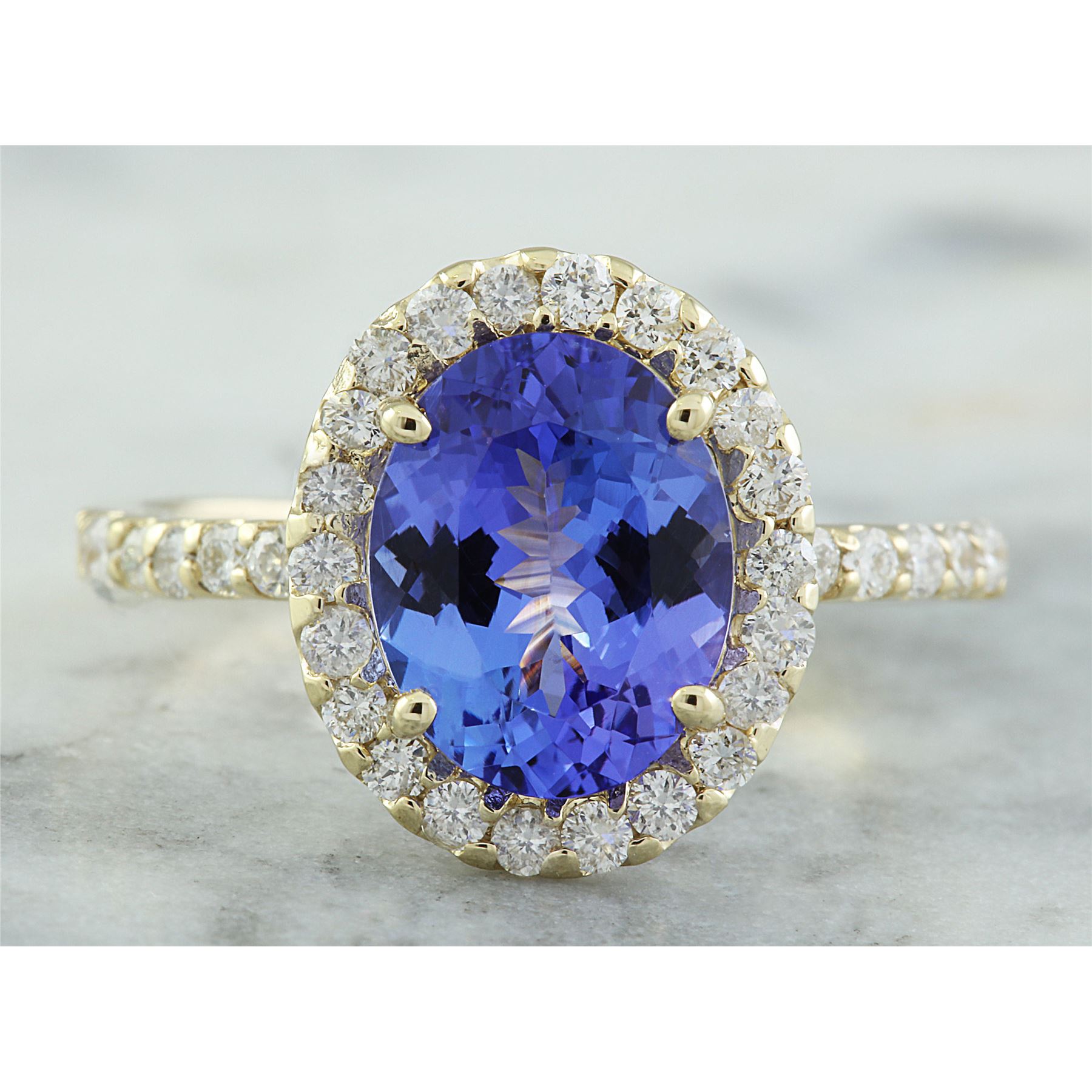 3.24 CTW Tanzanite 18K Yellow Gold Diamond Ring