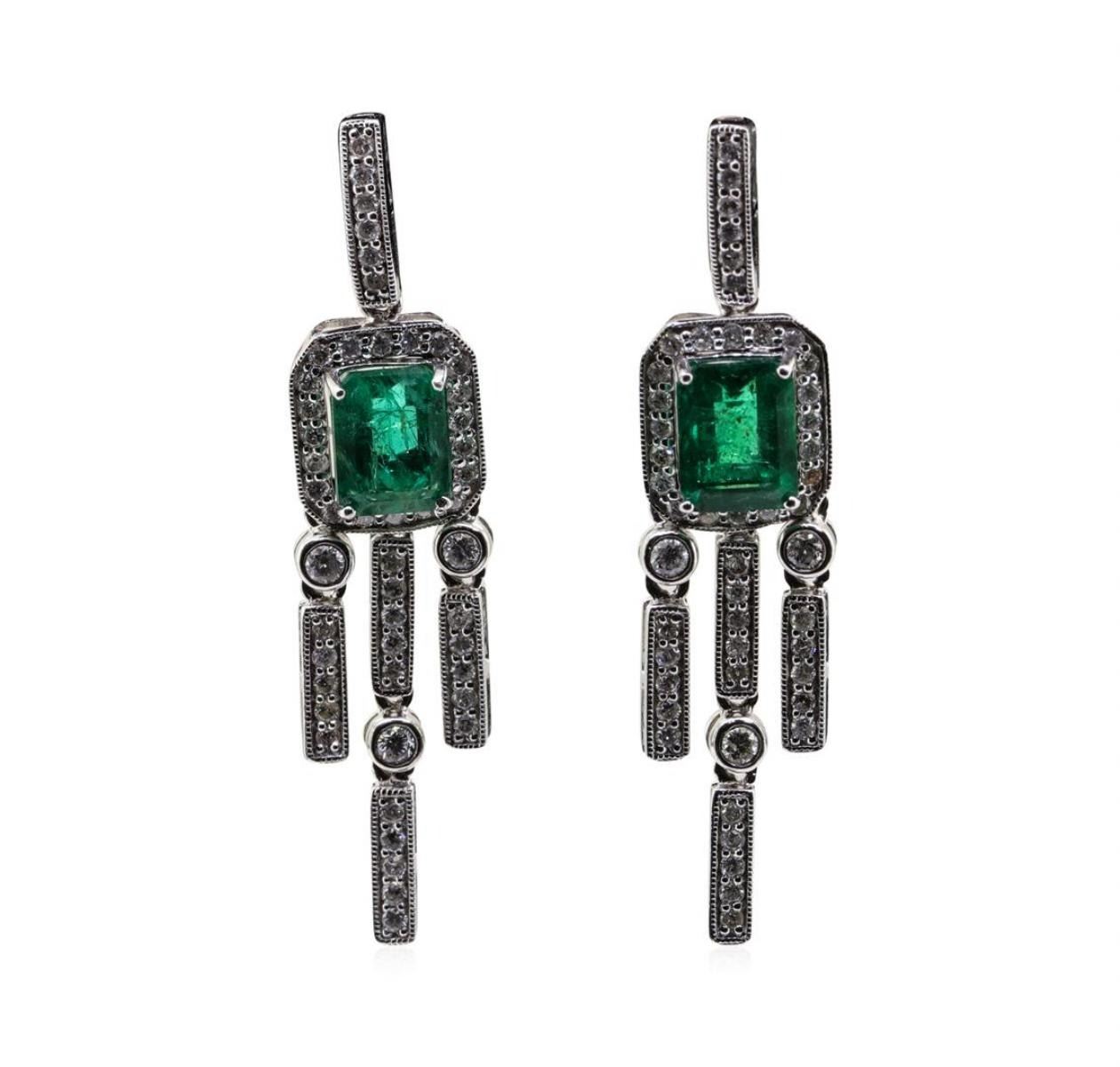 One 3.24ctw Emerald and Diamond Earrings - Platinum. AIG certified. See Appraisal for more details. AIG Appraised.