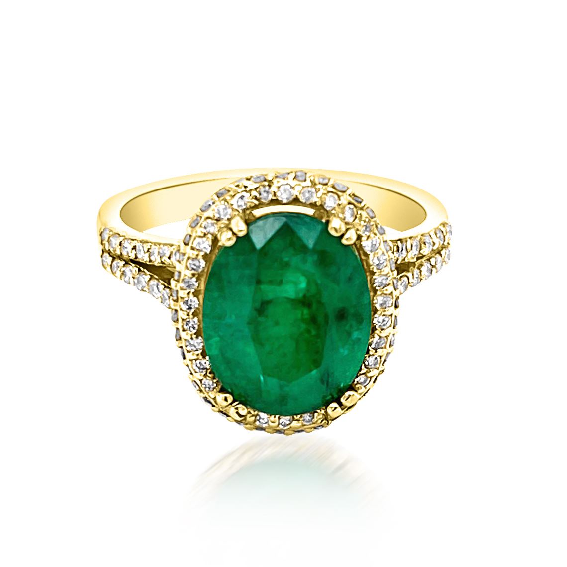 3.24ct Natural Emerald 14K Yellow Gold 4.8gm Diamond 0.57ct Ring #PJ9950