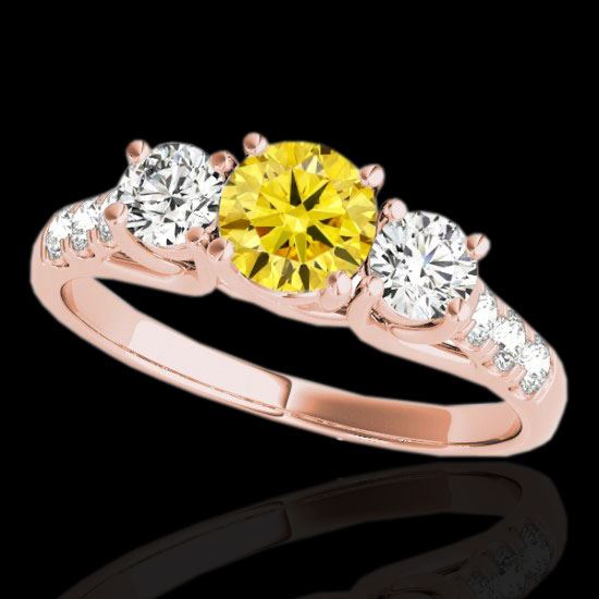 REF-394Y5K -35456 ---- 3.25 CTW Certified Si/I Fancy Intense Yellow Diamond 3 Stone Ring 10K Rose Gold ---- Luxury Designer Brand Ring Appraised at $23,850 Certificate Number US35456  10k Rose gold,  Ring Size is 7, Ring measuring approx. Uniform, weighing in total approx. 5.8 grams. Made in the USA and is stamped 10k, Main stone 1.5 carat total weight containing 1 pieces of Intense Fancy Yellow color with SI  quality Round shape cut Diamond , Stone #2 1.75 carat total weight containing 8 pieces of H-I color with  VS/SI quality Round shape cut Diamond